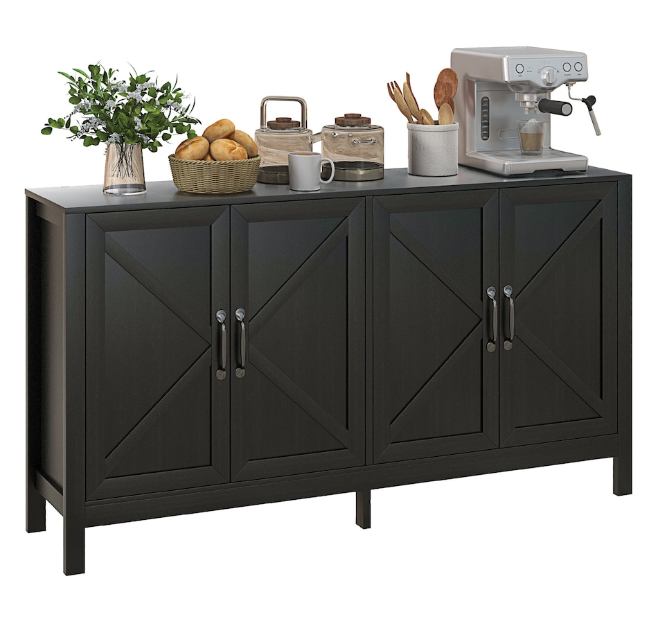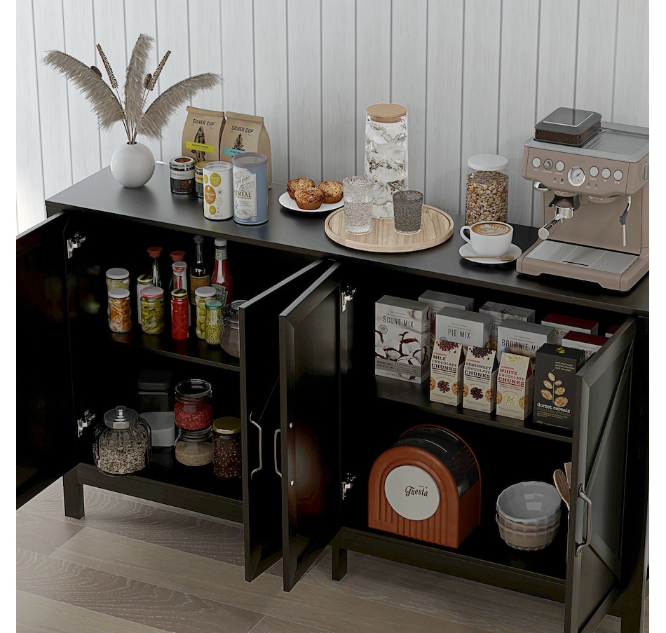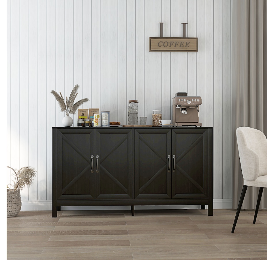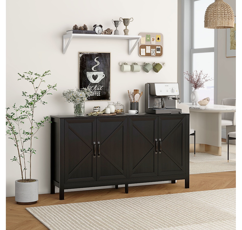 Storage Cabinet, Buffet Sideboard with Barn Door, Shelf, Black Oak