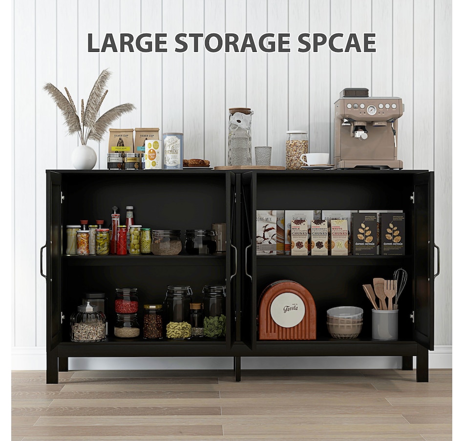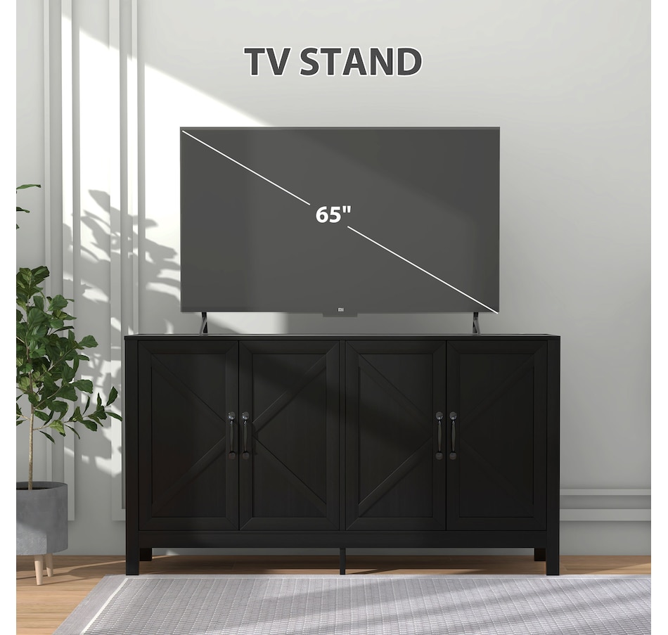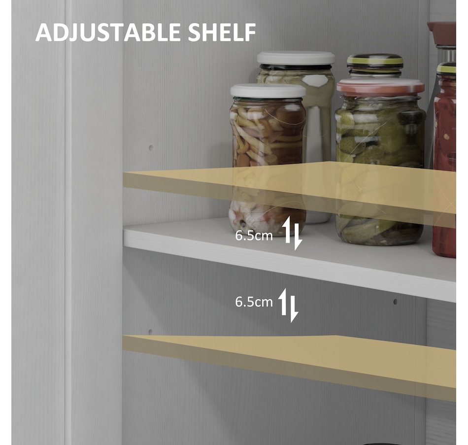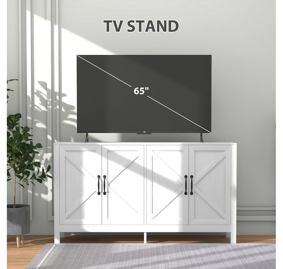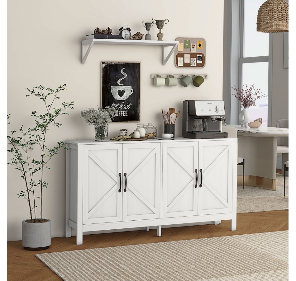 Experience a new storage level with the HOMCOM Modern Farmhouse Style Kitchen Storage Cabinet. This exceptional piece features a barn door design in a wood grain finish, a unique touch that effortlessly complements any decor. Its adjustable shelving is a game-changer, accommodating everything from kitchenware to media devices, making it a versatile addition to your entryway or kitchen. With its standout design and practical features, this storage solution is a must-have for any home!Features:
