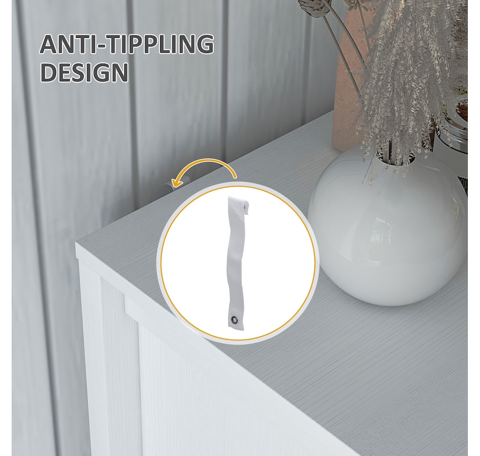 ● Solid particle board construction, metal hinges, and an anti-tip kit for enhanced stability;