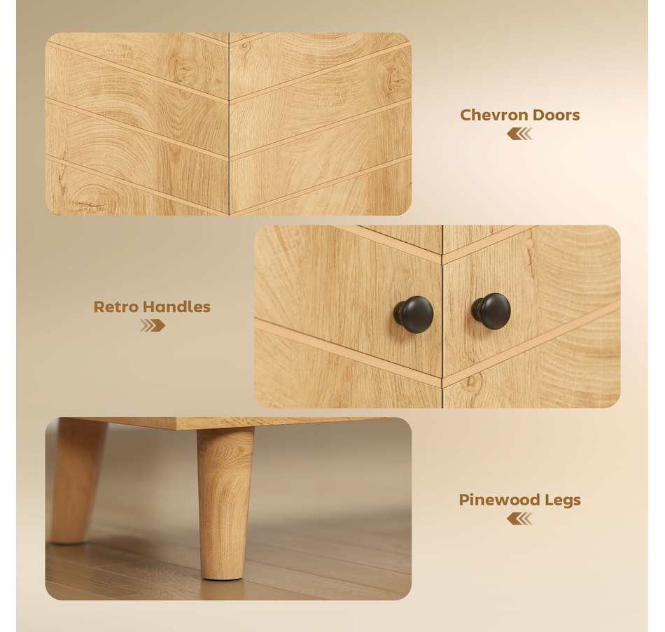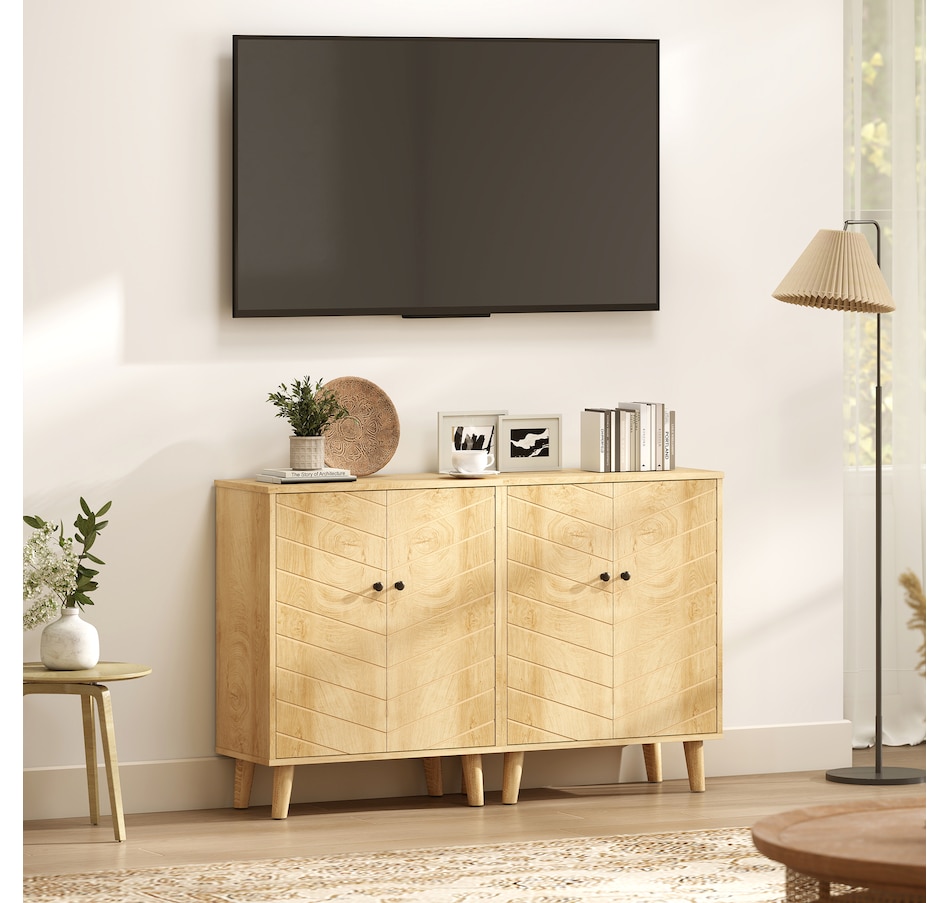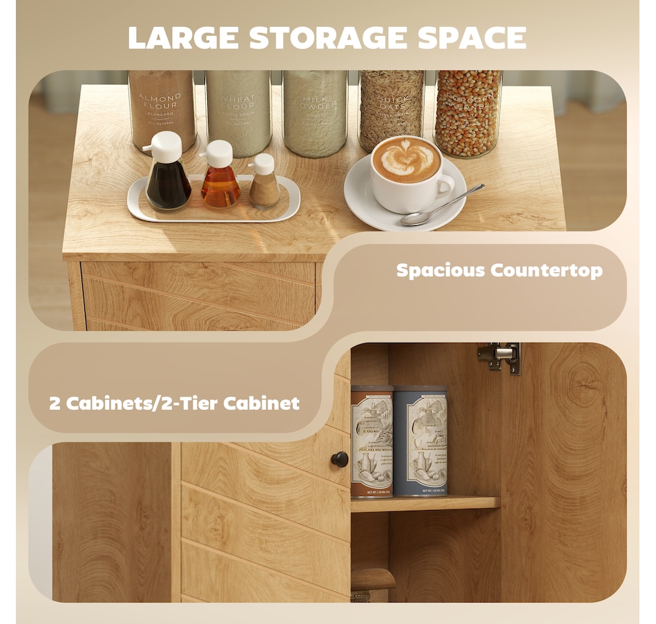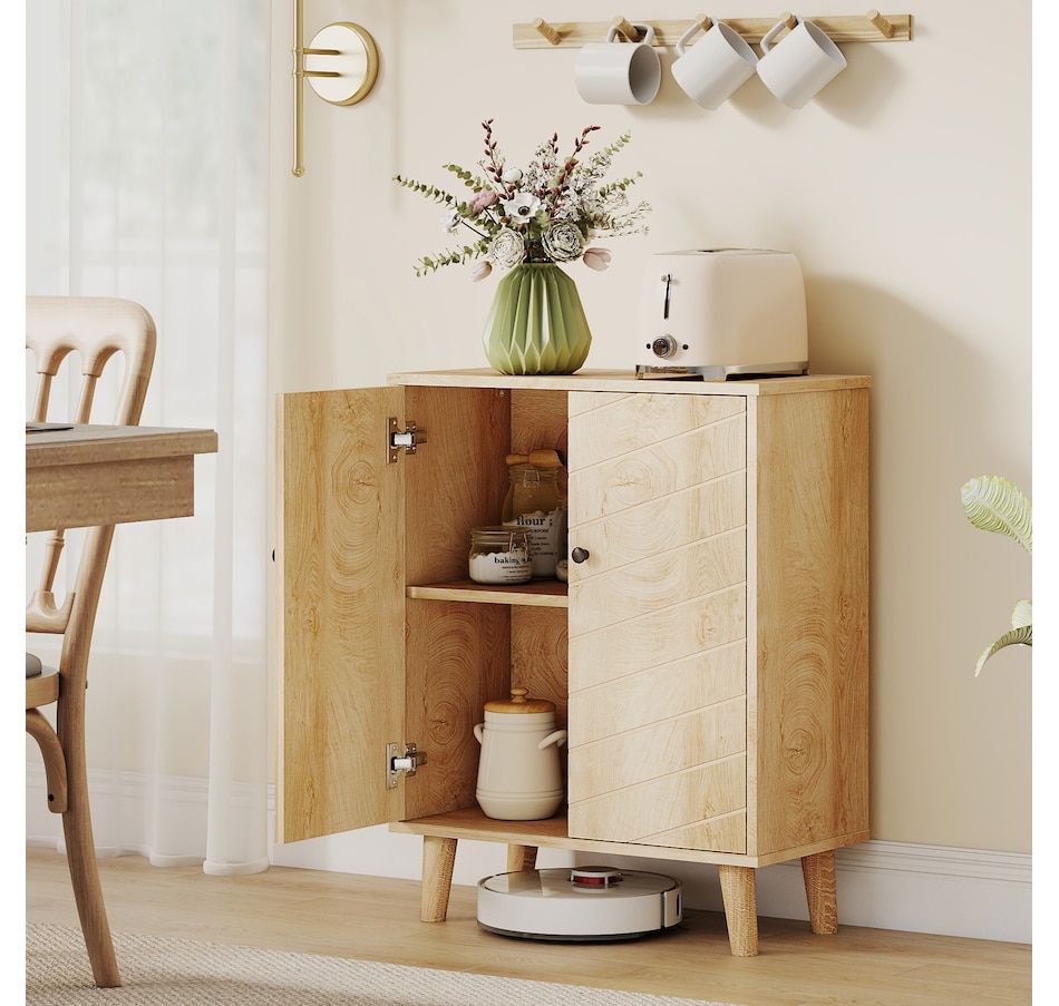 Keep your home stylish and the space tidy: look no further than this freestanding accent cabinet from HOMCOM. It comes with a two-tier cabinet, offering enough storage for your daily items. Also, includes a tabletop for displaying small decorations. The wood-look texture with retro handles creates a vintage look, something different for your home space. An excellent cabinet for your living room, or entryway.Features: