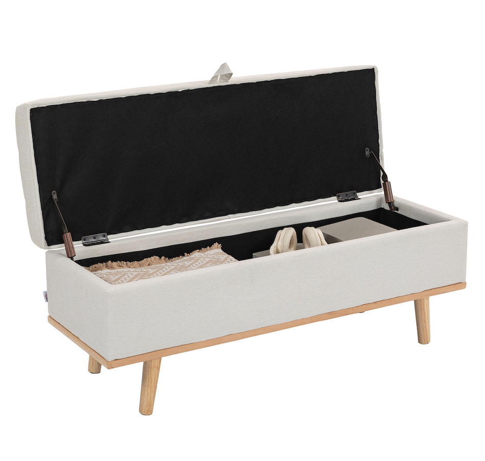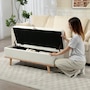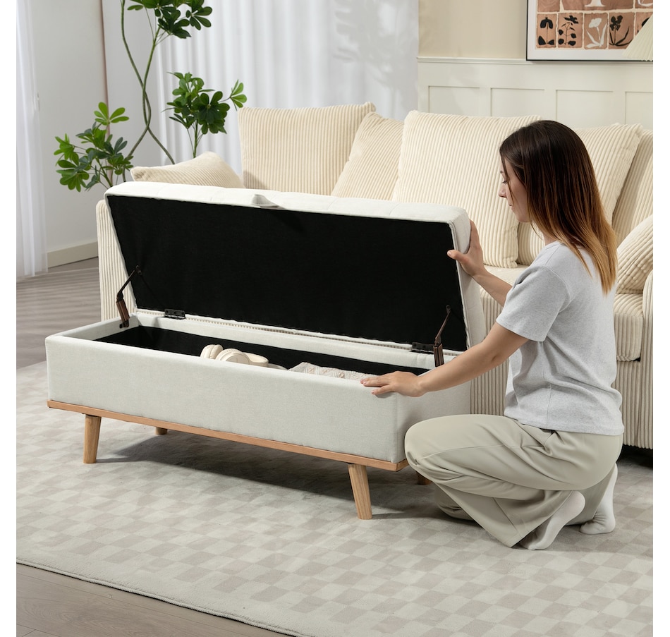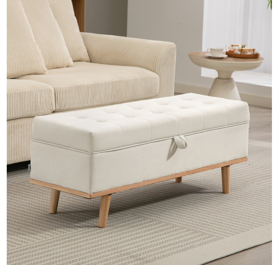 Storage Ottoman, Foot Rest with Lift-Up Lid, Wood Legs, Cream White
