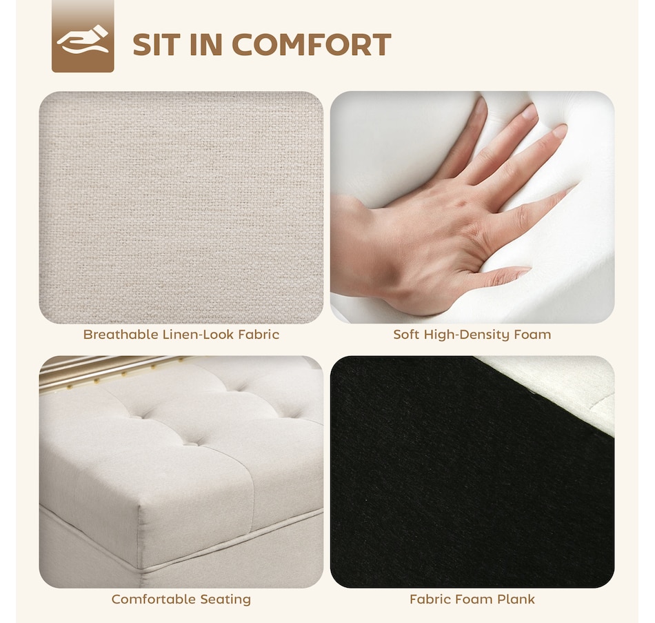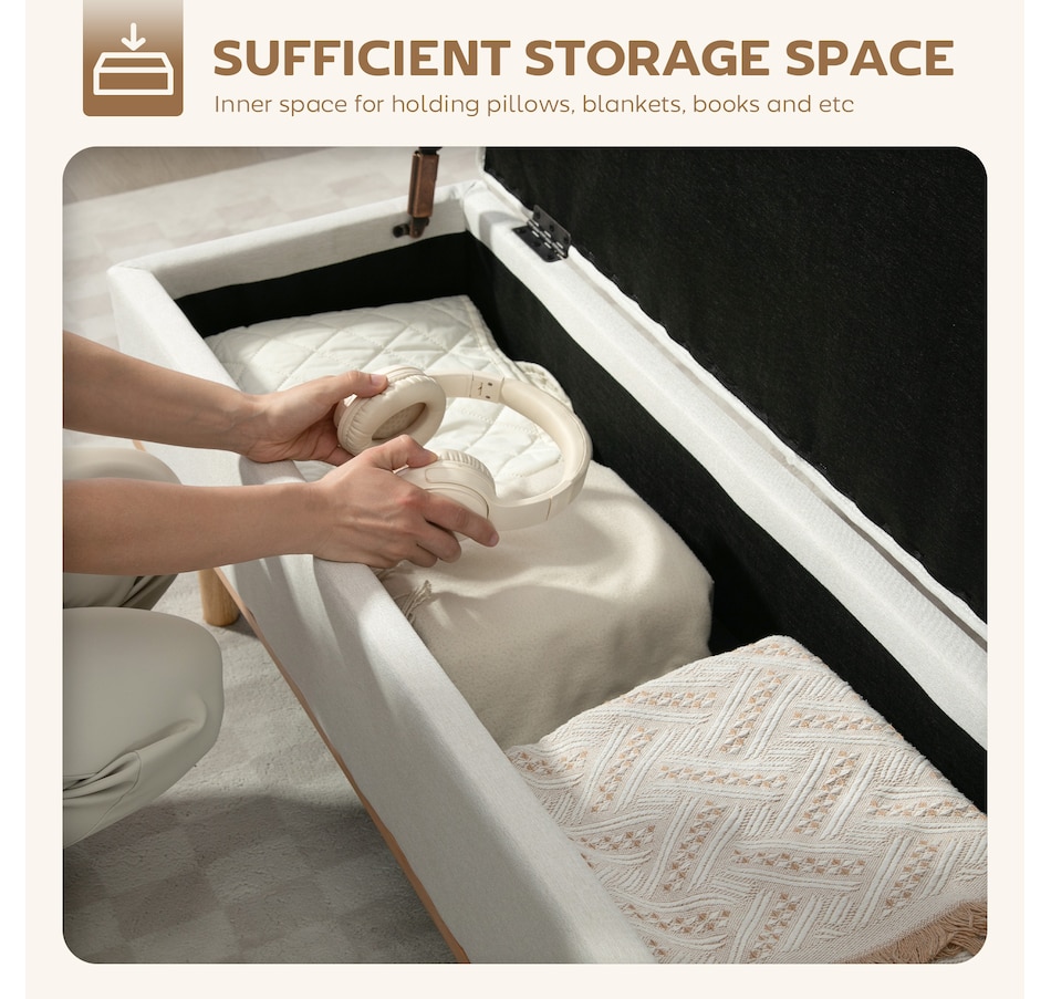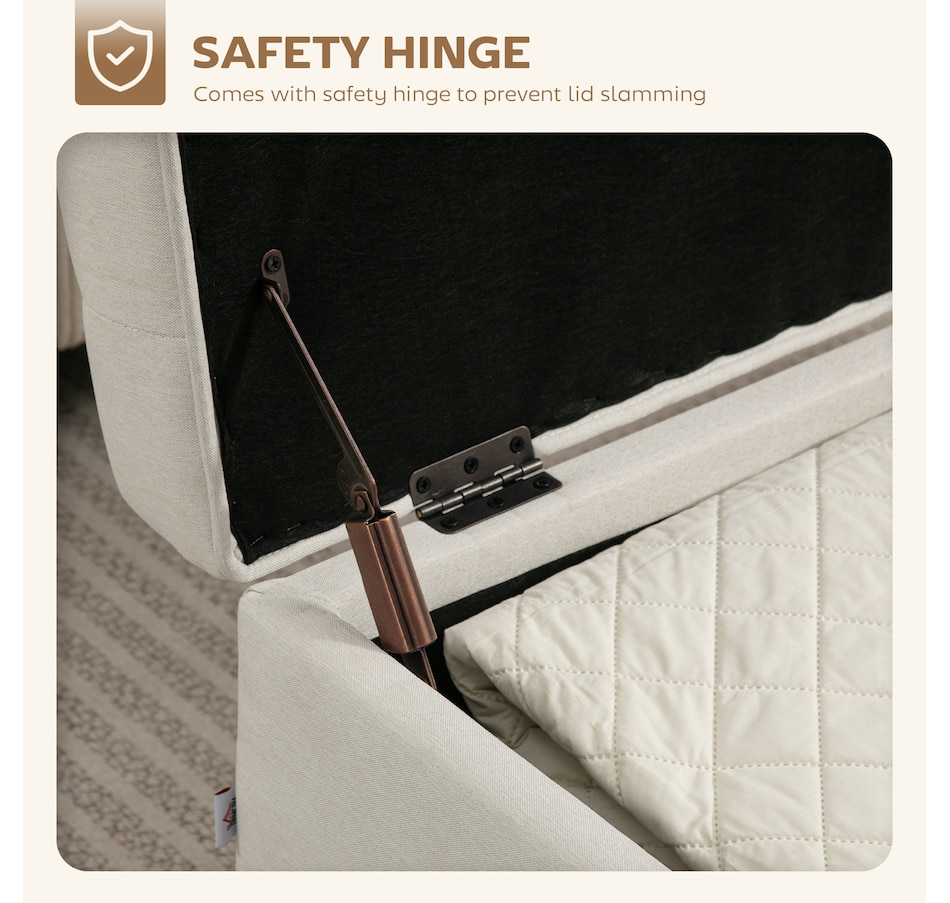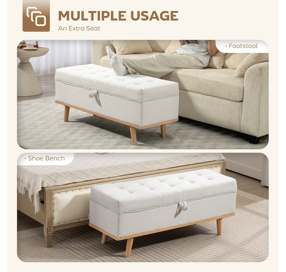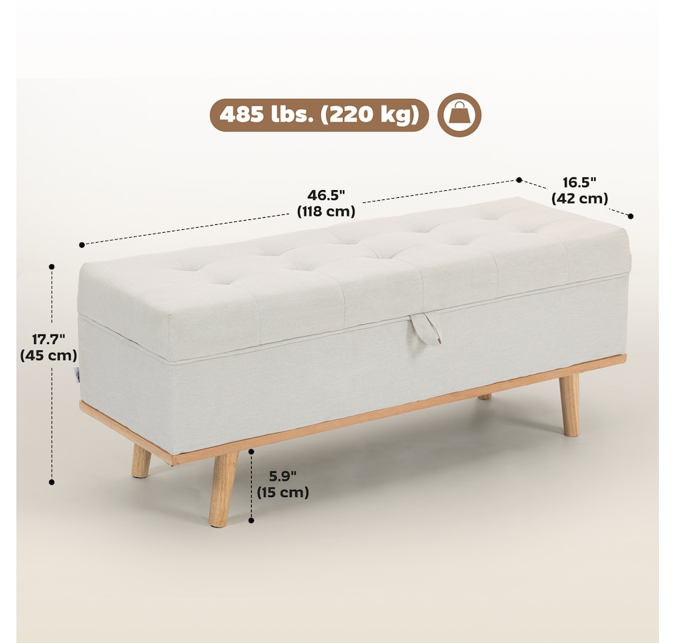 Tired of living room clutter and lacking a truly relaxing spot? The constant mess can be stressful, and flimsy furniture offers no peace of mind. This HOMCOM storage ottoman provides a solution. Tuck away blankets and books in its spacious compartment. Sink into the plush sponge top, supported by a solid wood frame and steel legs, for a secure and serene moment of comfort in your organized home.Features: