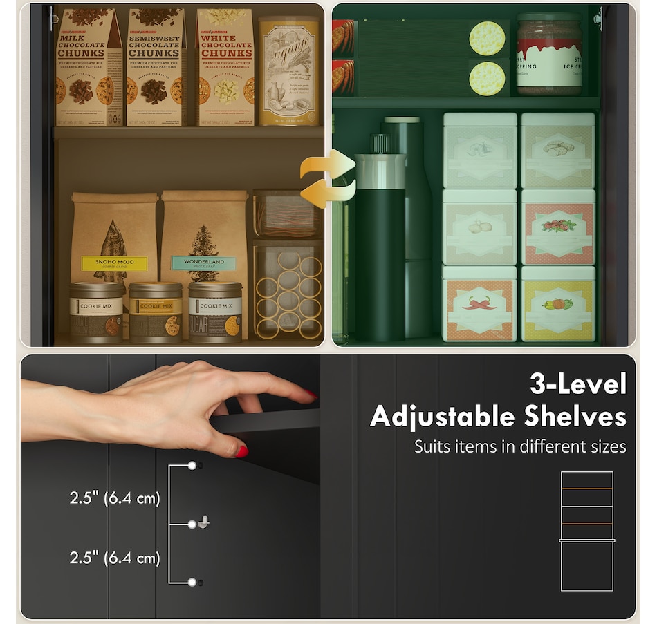 Tall Pantry Cabinet, 67" Farmhouse Kitchen Storage Cabinet