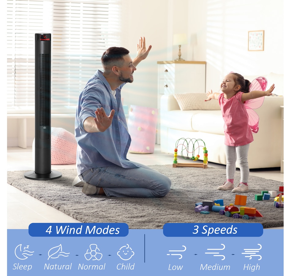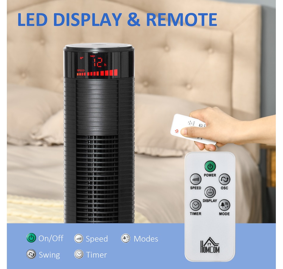 Stay comfortably cool during those hot Summer afternoons and nights with this fan with remote from HOMCOM. This home fan is easy to use and the perfect addition to your home and office. It features 3 variable settings to meet different cooling needs. The oscillation function direct exactly the air flow where you need it to. Timer function offers you cooling breeze while saving energy. LED panel and remote controller making the operation easier. Bring cool to your bedroom!