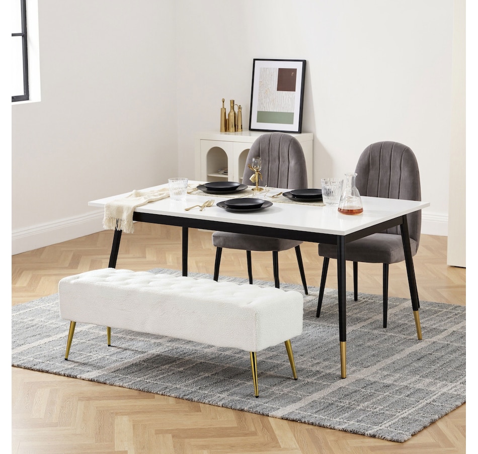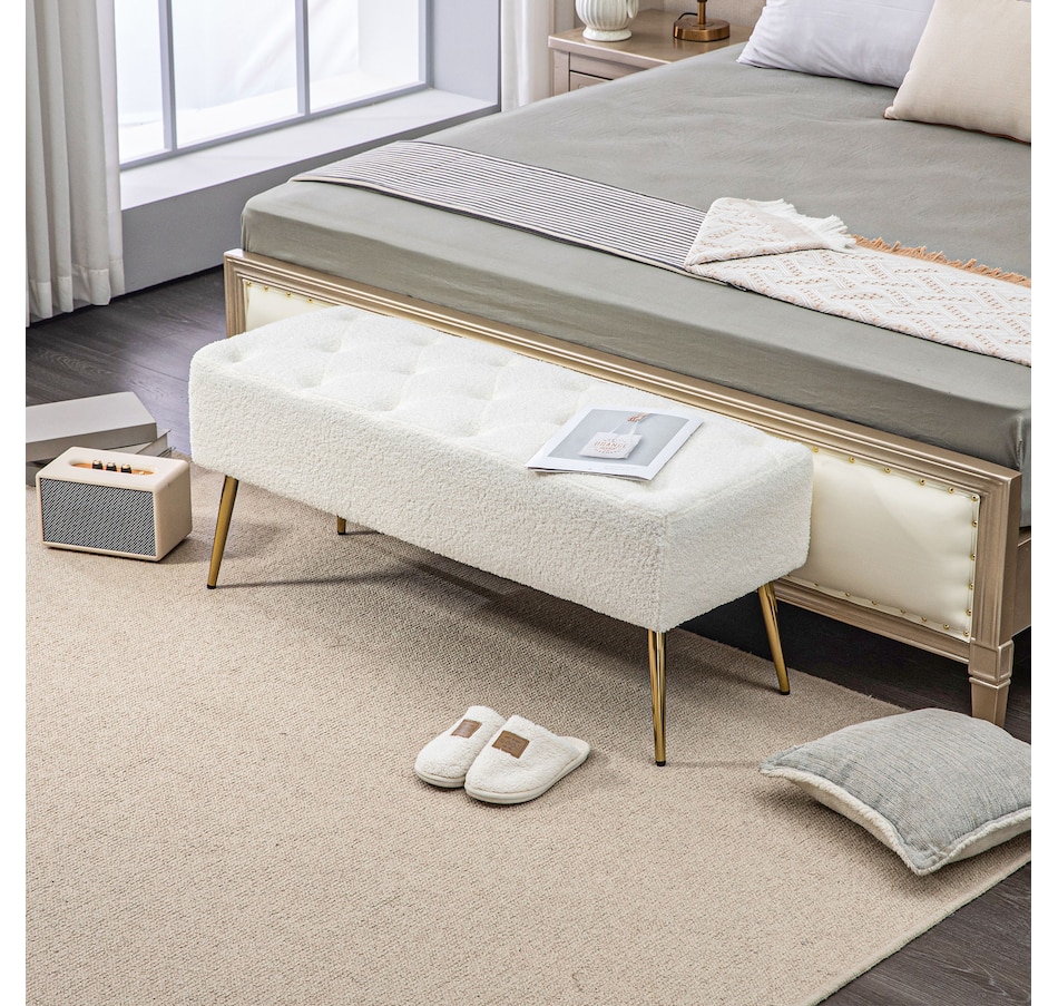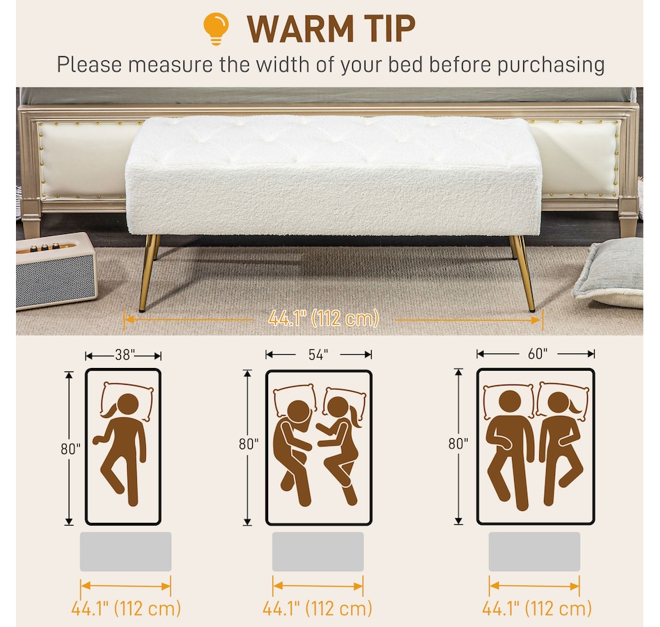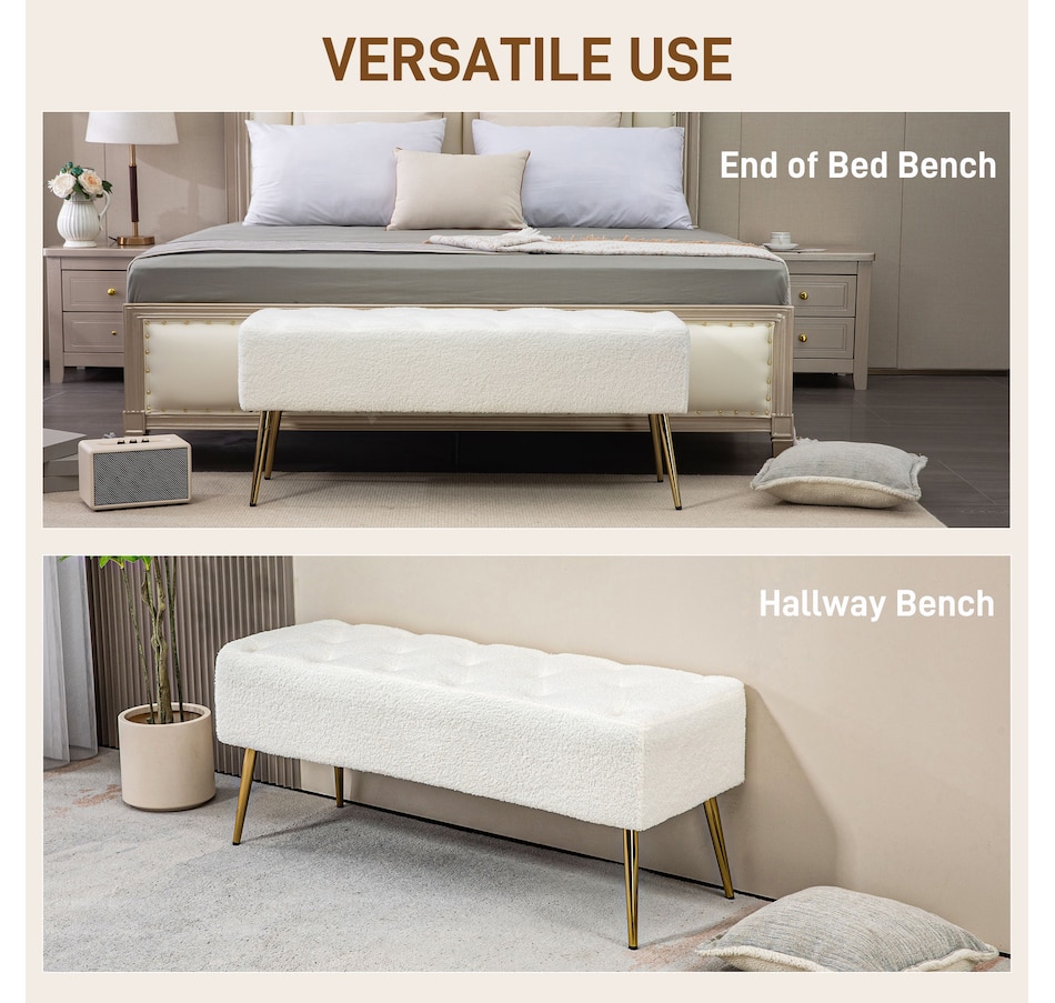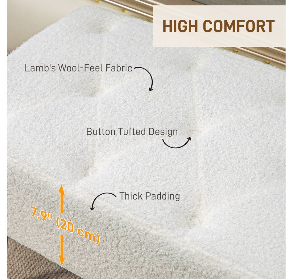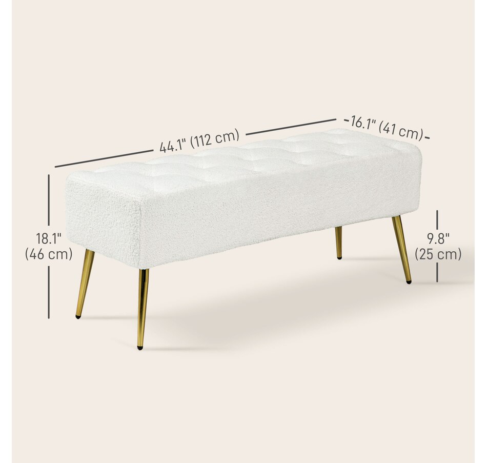 Are you looking for an elegant and practical bench seat? HOMCOM has got you covered with this modern bedroom bench. It can serve as a bench sitting, bed end bench, or entryway bench, which fits the living room, dining room, bedroom, or hallway. It's covered in lamb's wool-feel fabric with a thick foam padding cushion for a comfortable sitting experience. Make your house feel like a home with HOMCOM.Features: