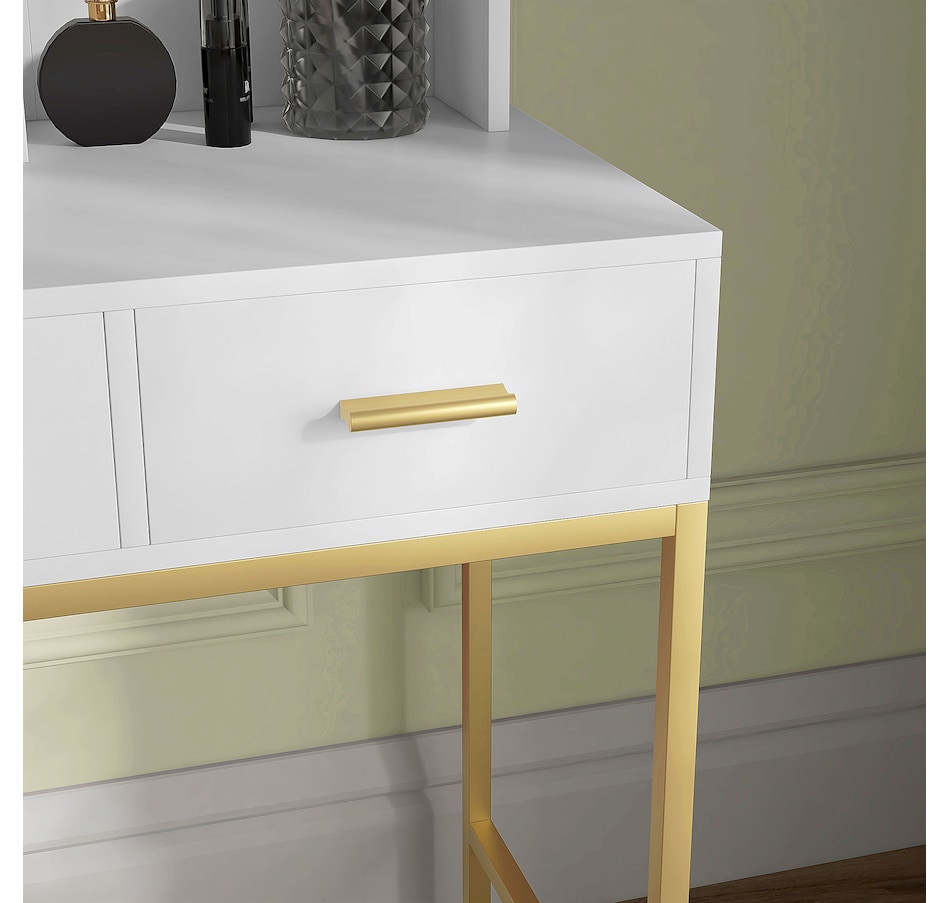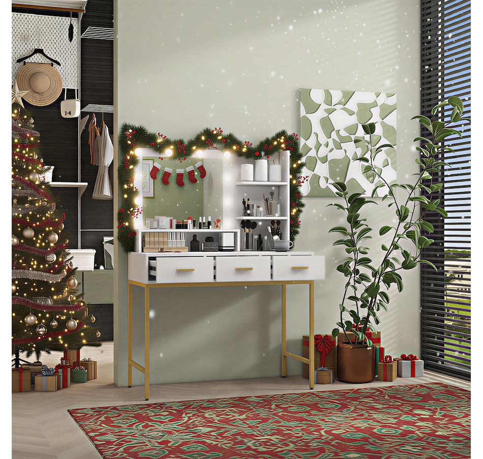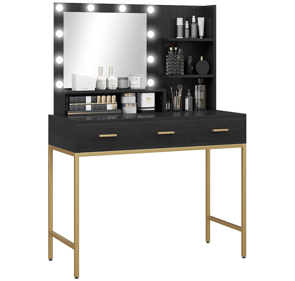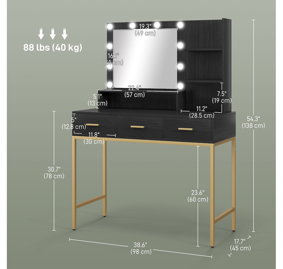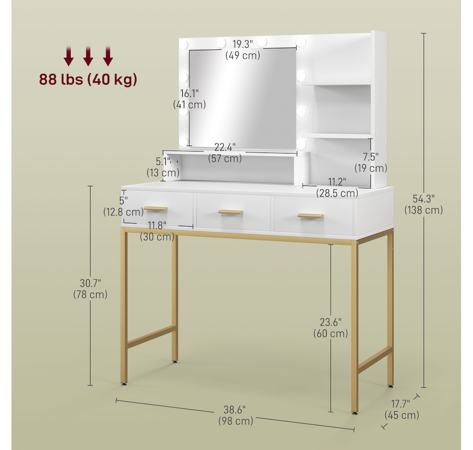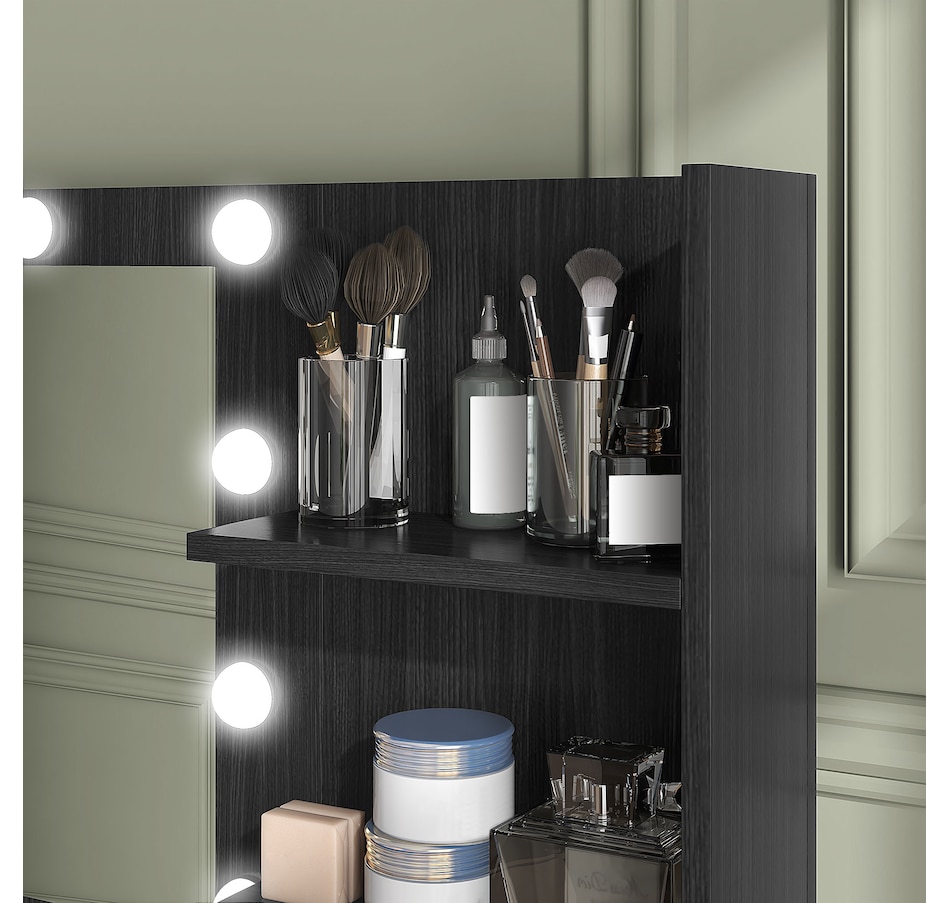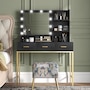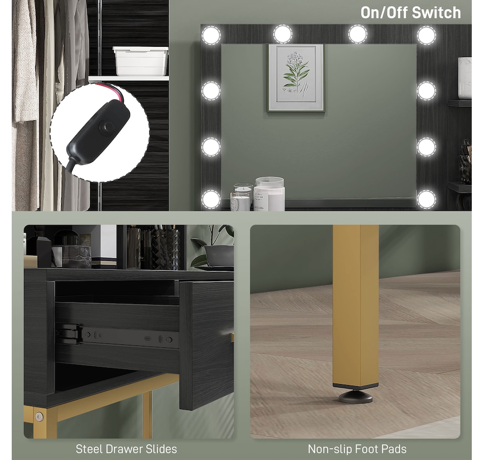 Transform your beauty routine into an enchanting experience with the HOMCOM make up table! Revel in the ample storage of three large drawers, complemented by three open shelves to showcase your perfumes and cosmetics. Add a touch of Hollywood glamour with a big, illuminated mirror, featuring 10 dazzling LED bulbs. Designed to bring elegance and ease to your bedroom or dressing space!