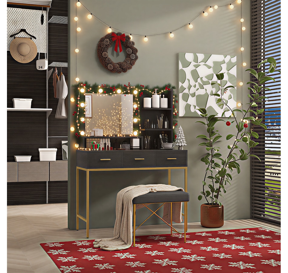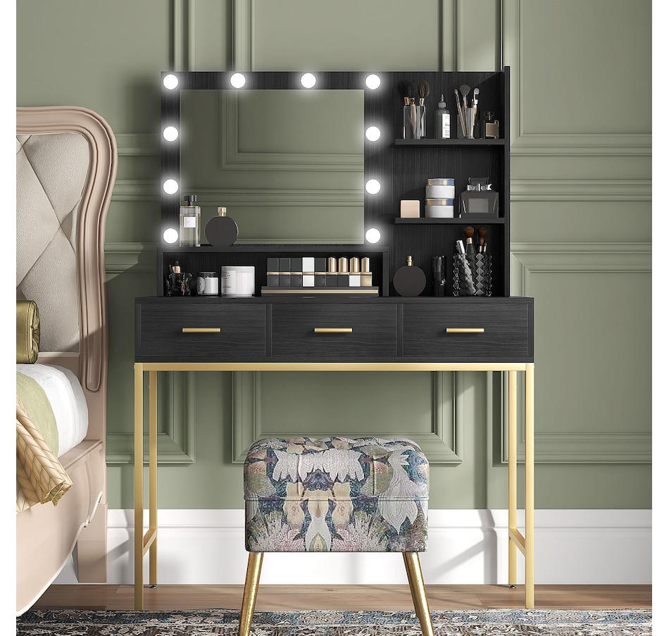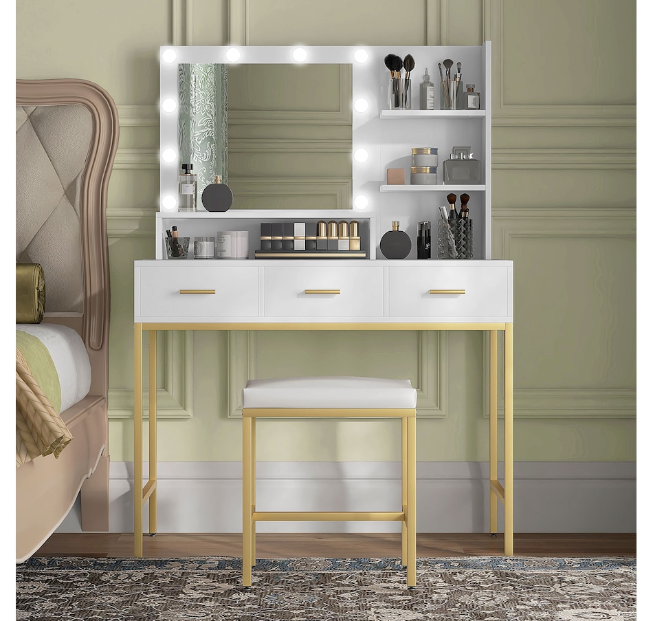 Vanity Table, Makeup Table with LED Mirror and Storage