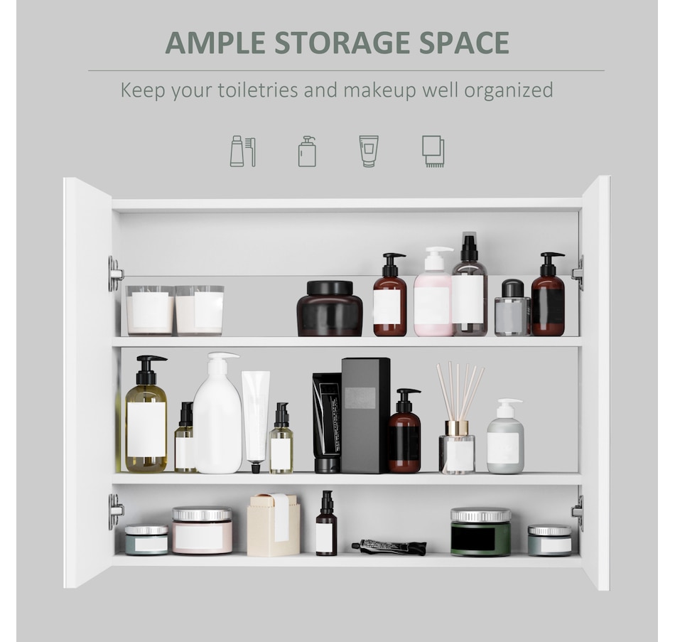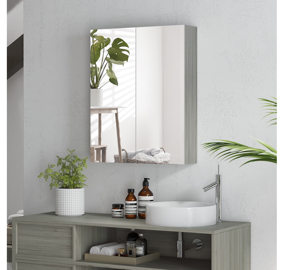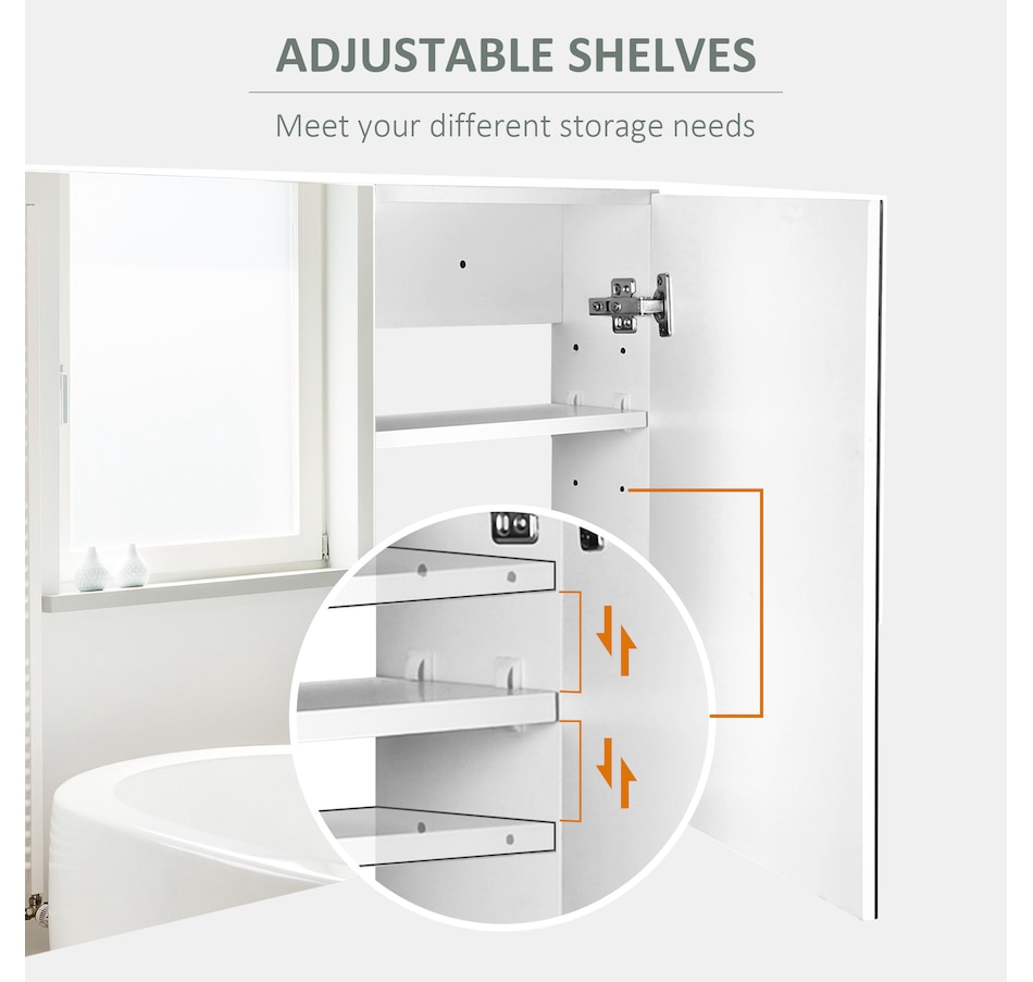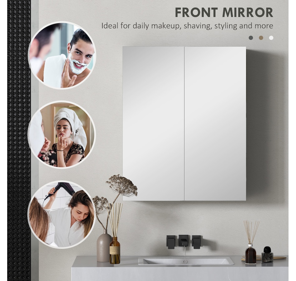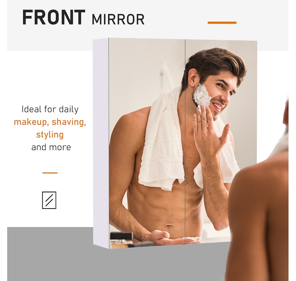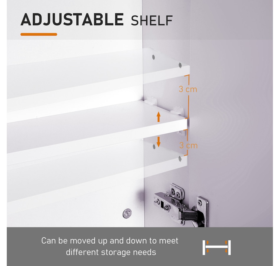 This stylish wall mounted mirror cabinet is a great necessity for any bathroom. Made of firm MDF and designed with double mirrored doors, it provides great storage space for your daily essentials. With an adjustable shelf, it can accommodate most articles you have. This HOMCOM medicine cabinet is absolutely a great solution for any bathroom.