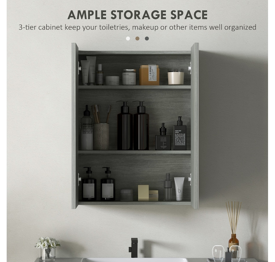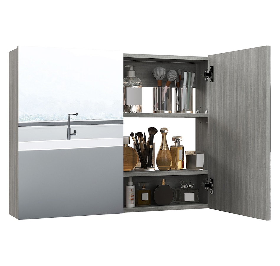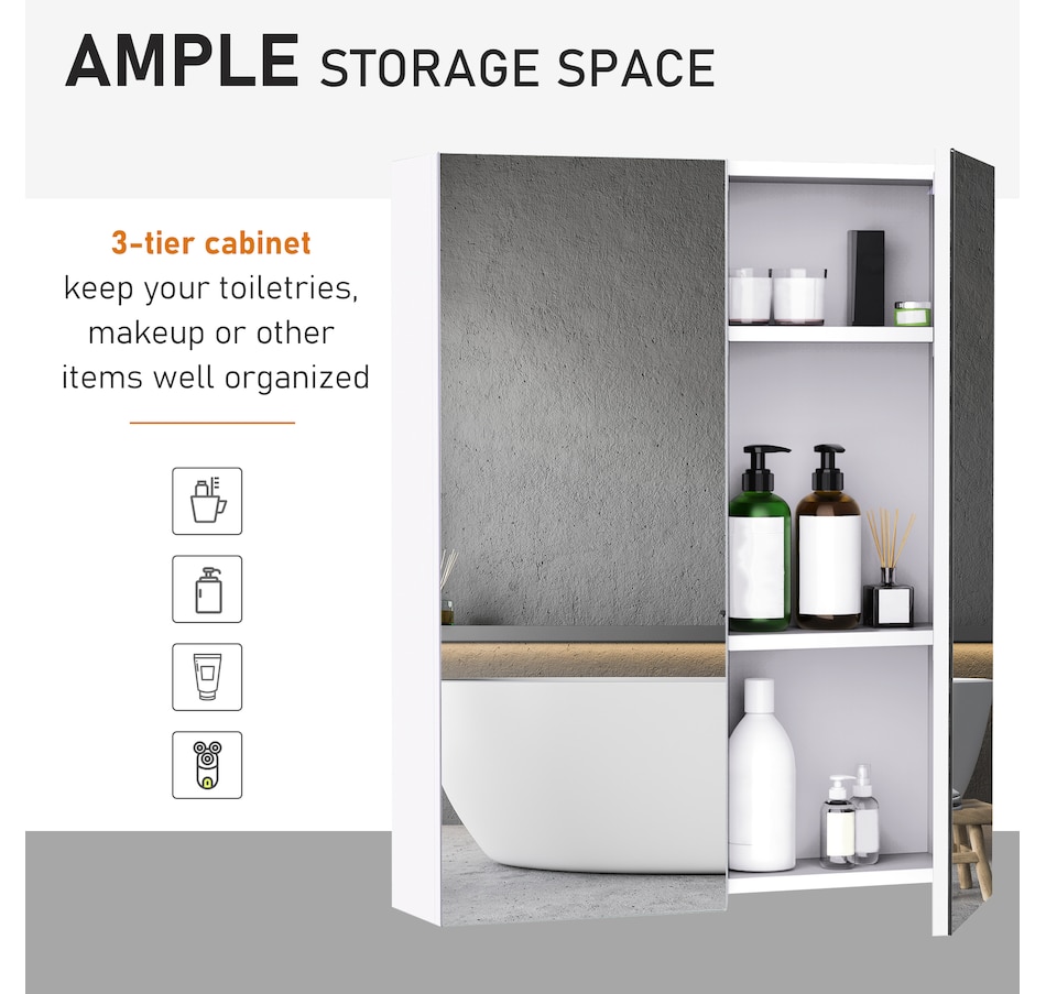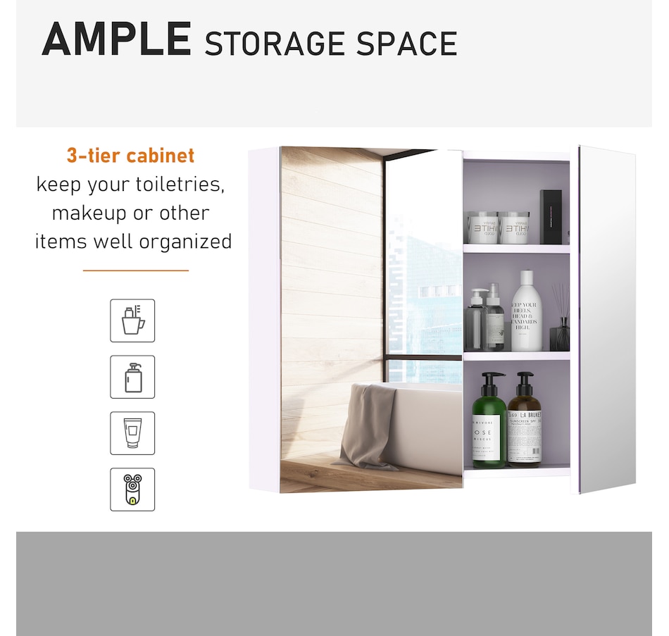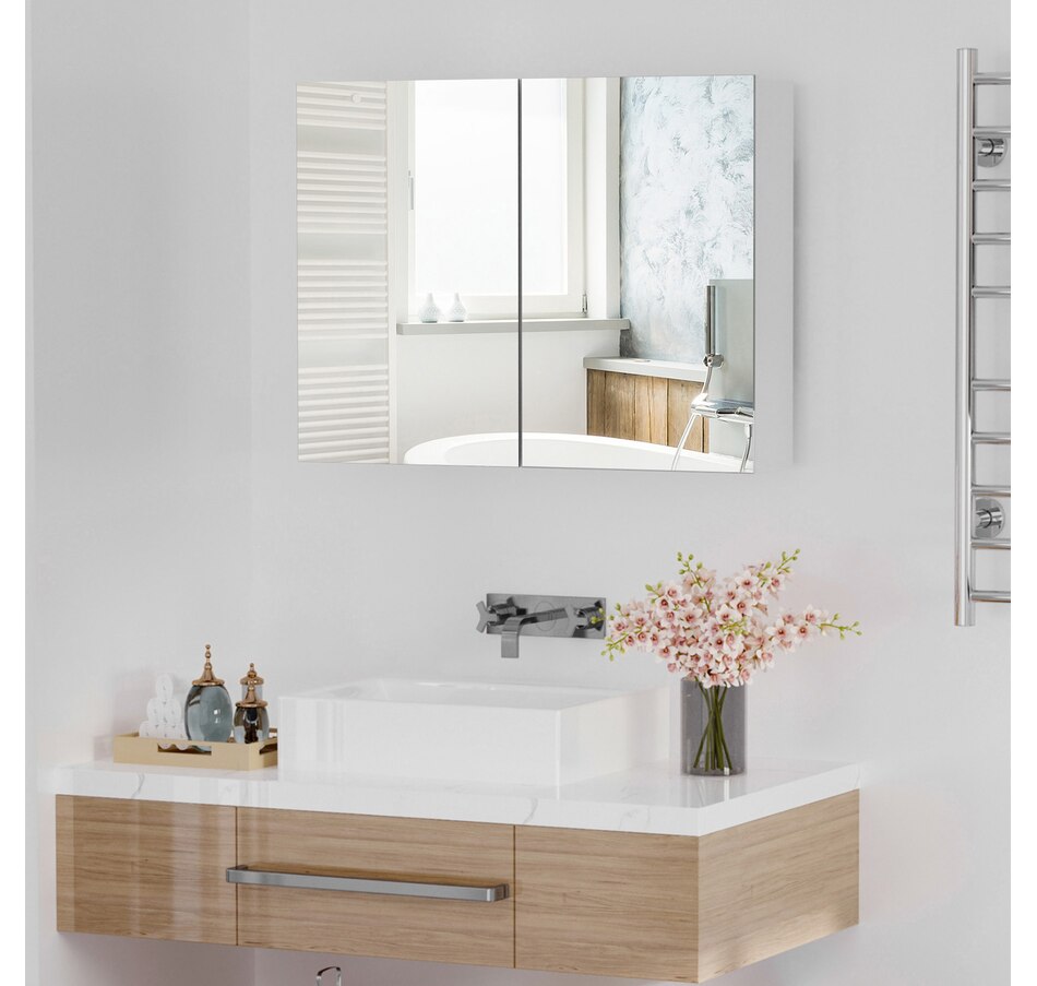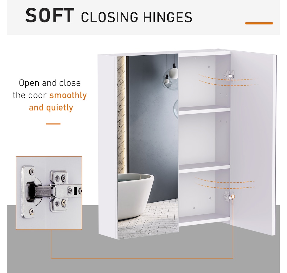 This stylish wall mounted mirror cabinet is a great necessity for any bathroom. Made of firm MDF and designed with double mirrored doors, it provides great storage space for your daily essentials. With an adjustable shelf, it can accommodate most articles you have. This HOMCOM medicine cabinet is absolutely a great solution for any bathroom.