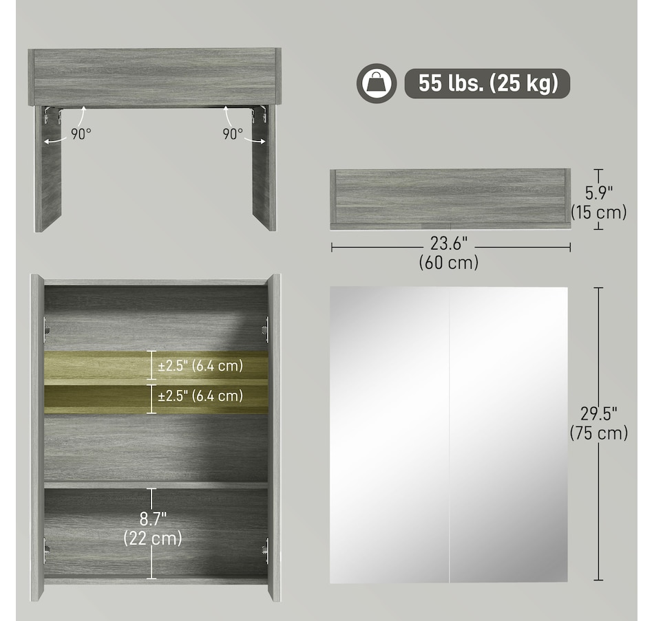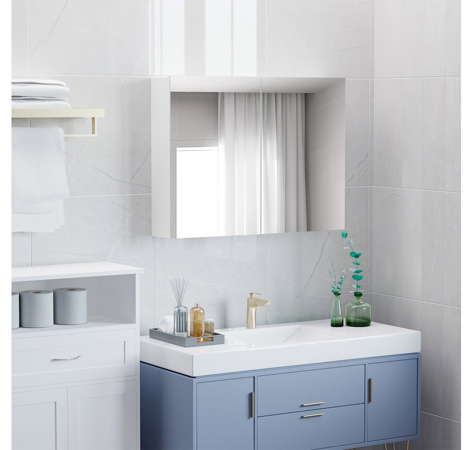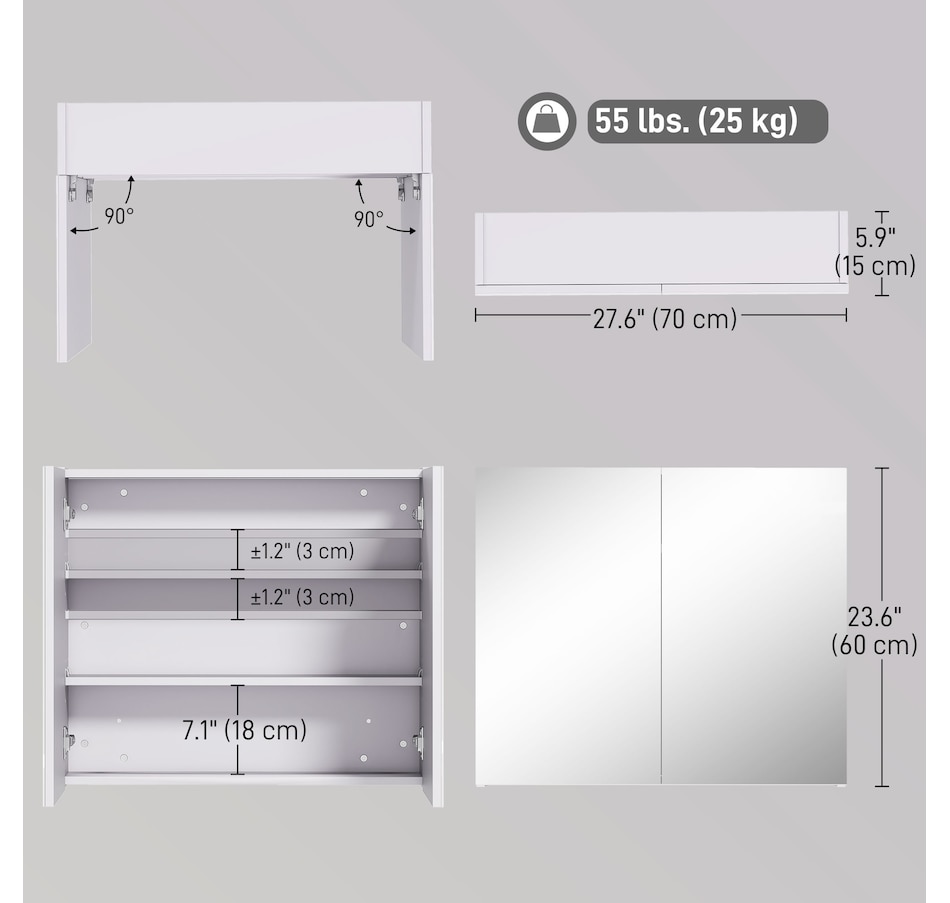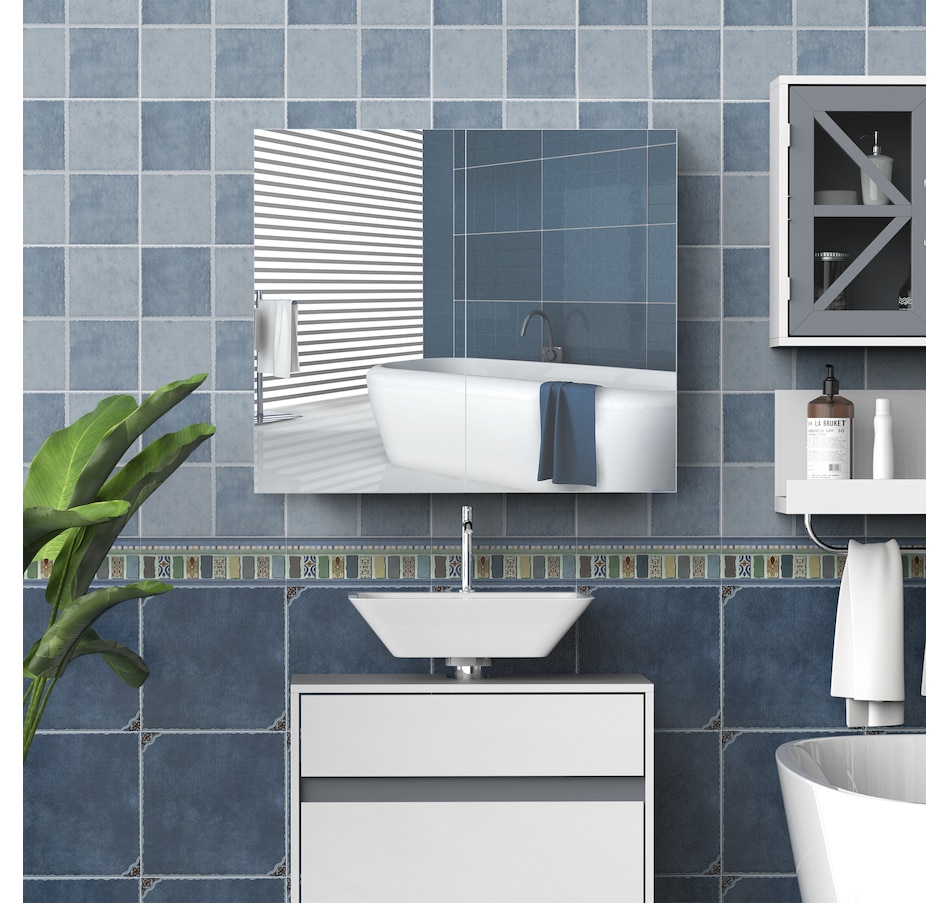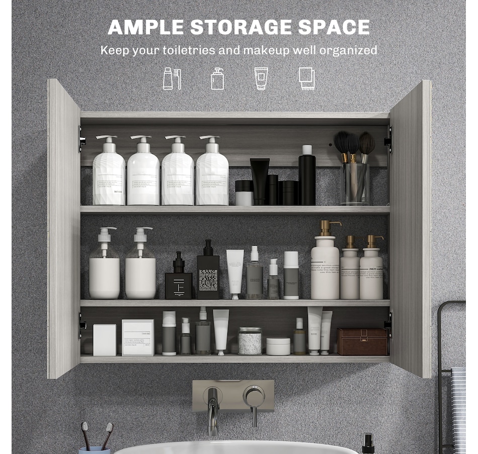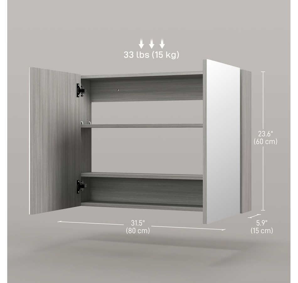 This stylish wall mounted mirror cabinet is a great necessity for any bathroom. Made of firm MDF and designed with double mirrored doors, it provides great storage space for your daily essentials. With an adjustable shelf, it can accommodate most articles you have. This HOMCOM medicine cabinet is absolutely a great solution for any bathroom.