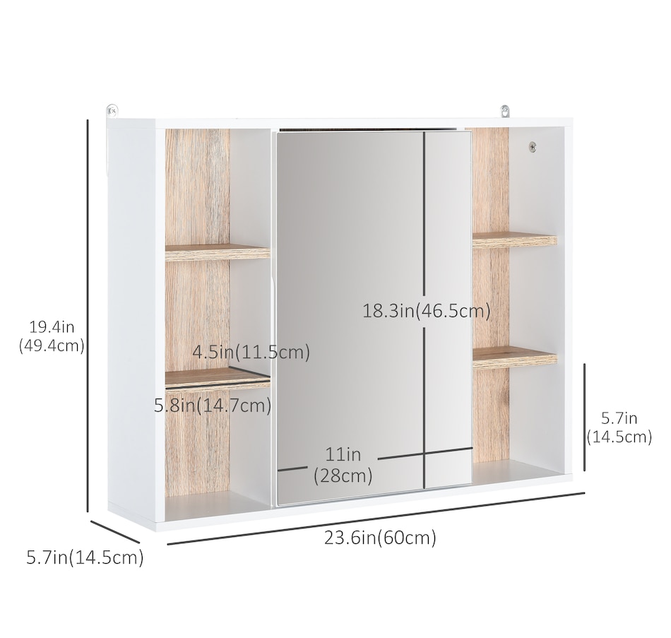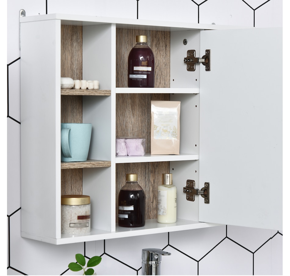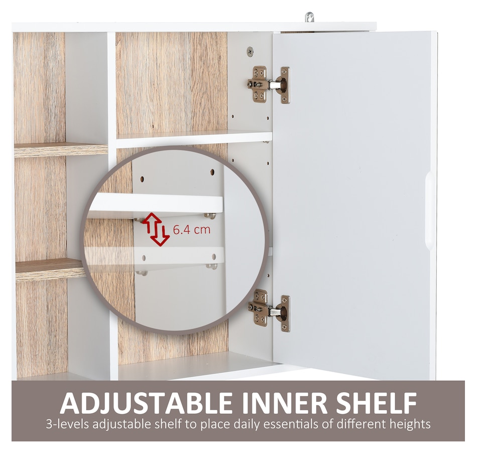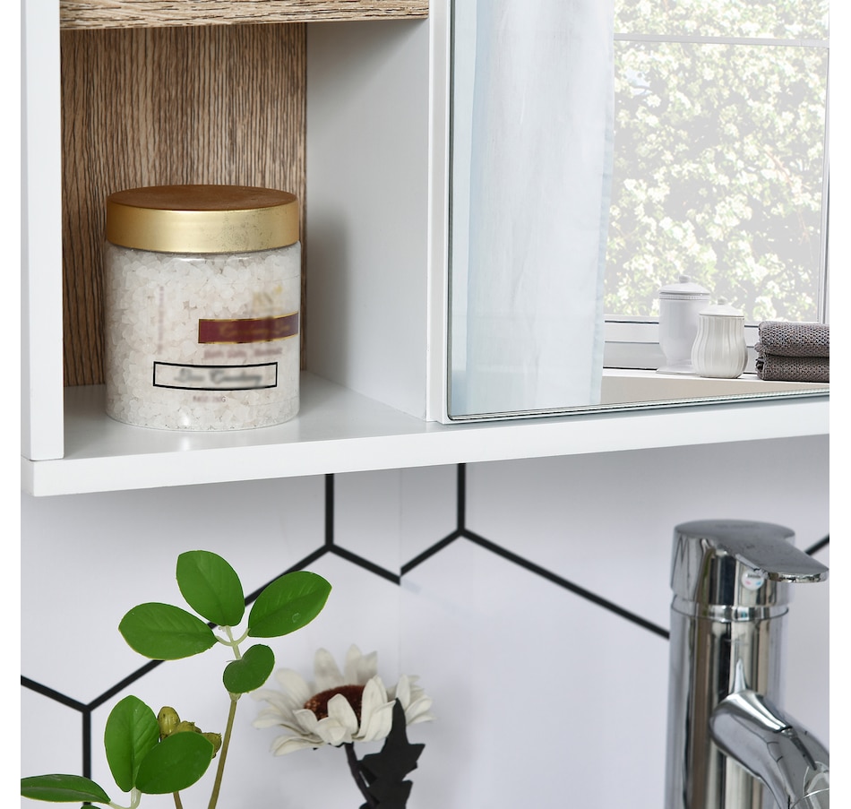 This bathroom medicine cabinet from HOMCOM is an attractive artwork that is specially designed for all your cosmetics or articles of everyday use keeping well organized. Besides, there is a cupboard with two adjustable shelves, so you can adjust the height according to the size of the items for your more convenient storage needs. The wall-mounted feature makes the bathroom storage cabinet space-saving, perfect for smaller rooms, such as bathroom, powder room.Features: