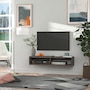 Create a stylish, modern centerpiece in your living room, bed room, or entertainment room with this HOMCOM TV stand with storage. The wall-mounted floating shelf takes up little space, and is designed with cable holes to better manage cables. Store your console and game system on this modern media console floating TV stand to keep the floor tidy. It can not only store various items, but also improve your room decoration.Features: