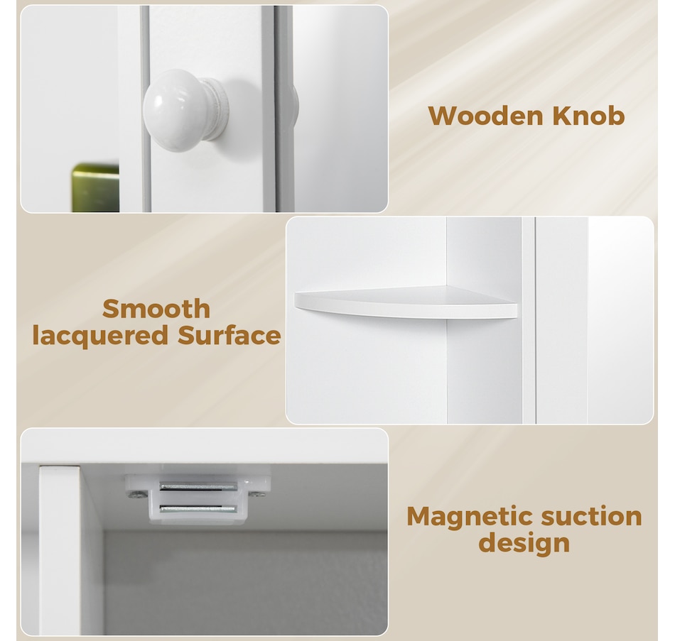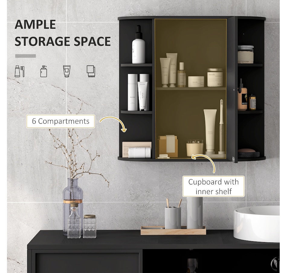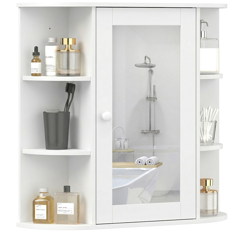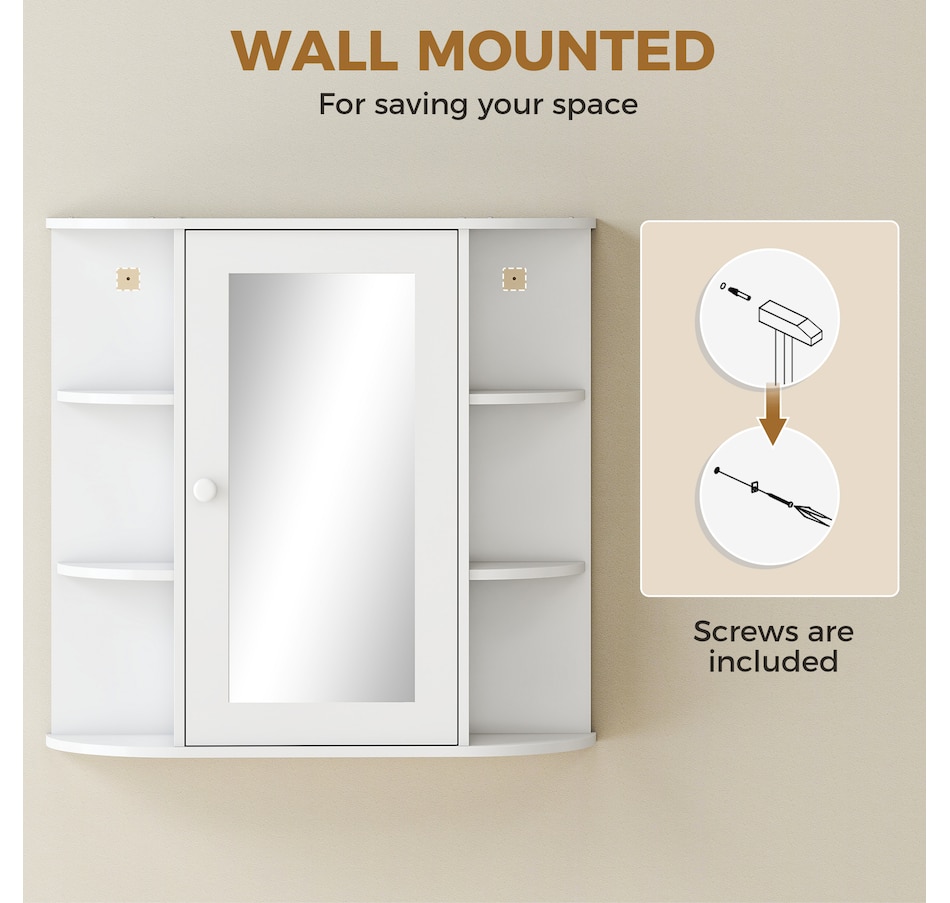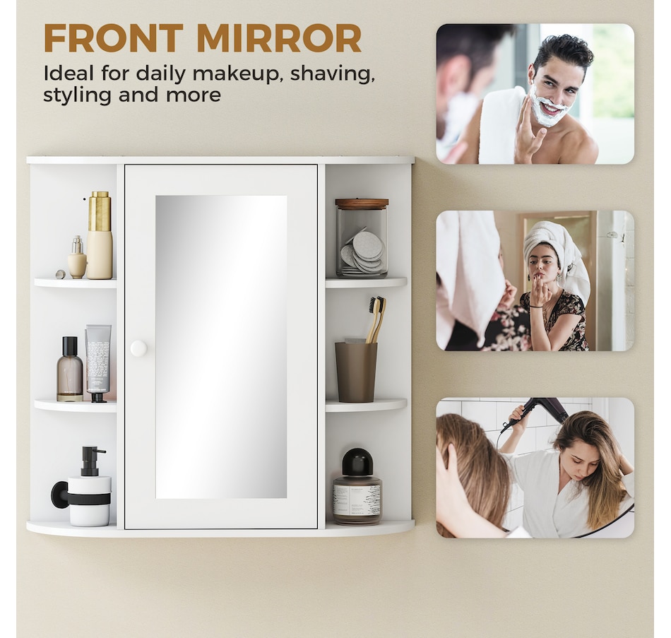 Expand the storage capacity in your bathroom with this bathroom cabinet by HOMCOM. It features multiple shelves to store all your bathroom essentials: soaps, towels, tissues, etc. and equipped with a central mirror, you can make up in front of the cabinet or check your outfit before you going out for work every morning. The bathroom mirror with storage won't take much room and can keep your bathroom clean and organized.