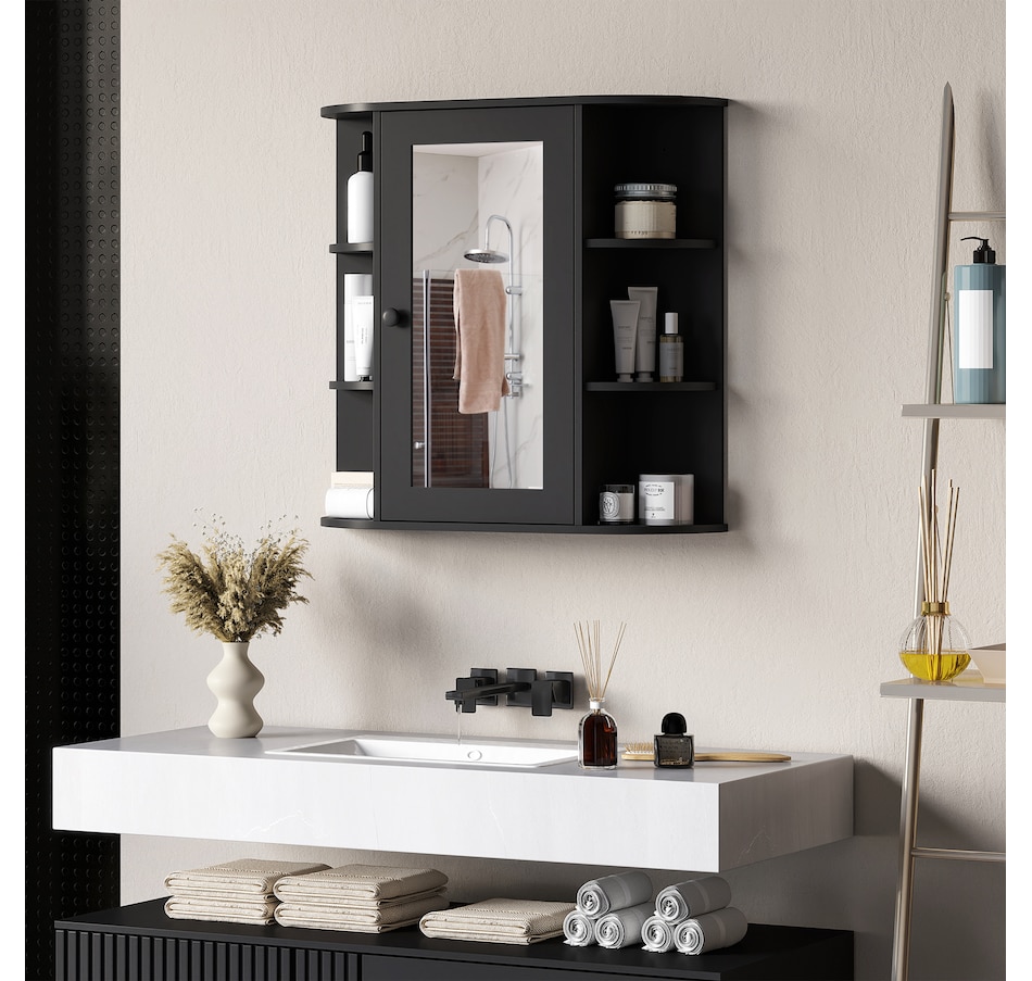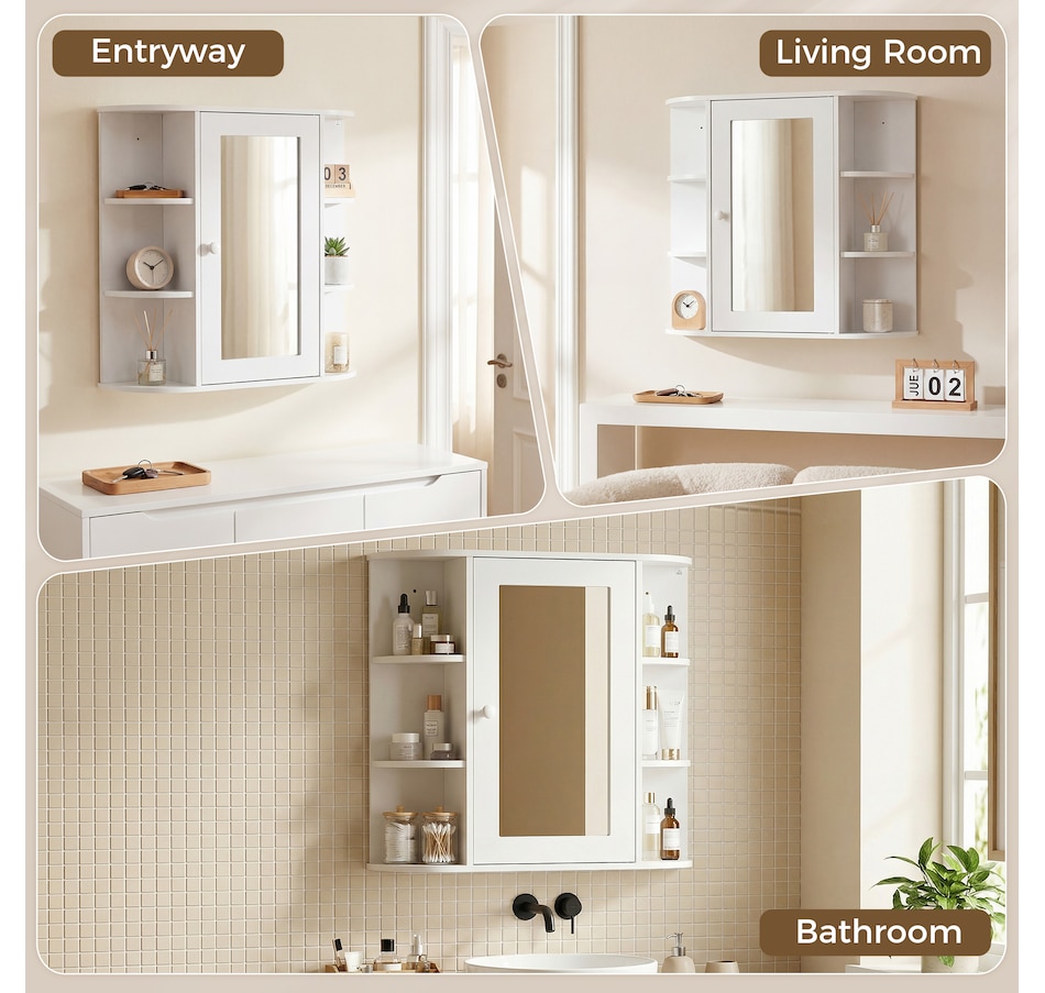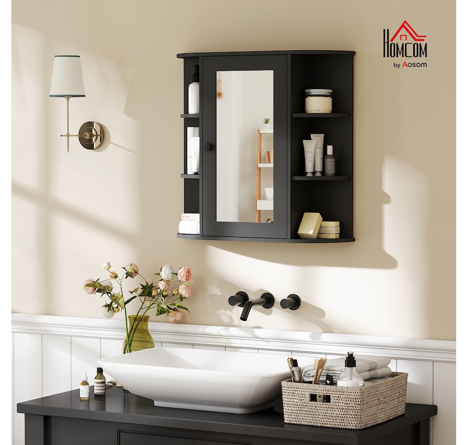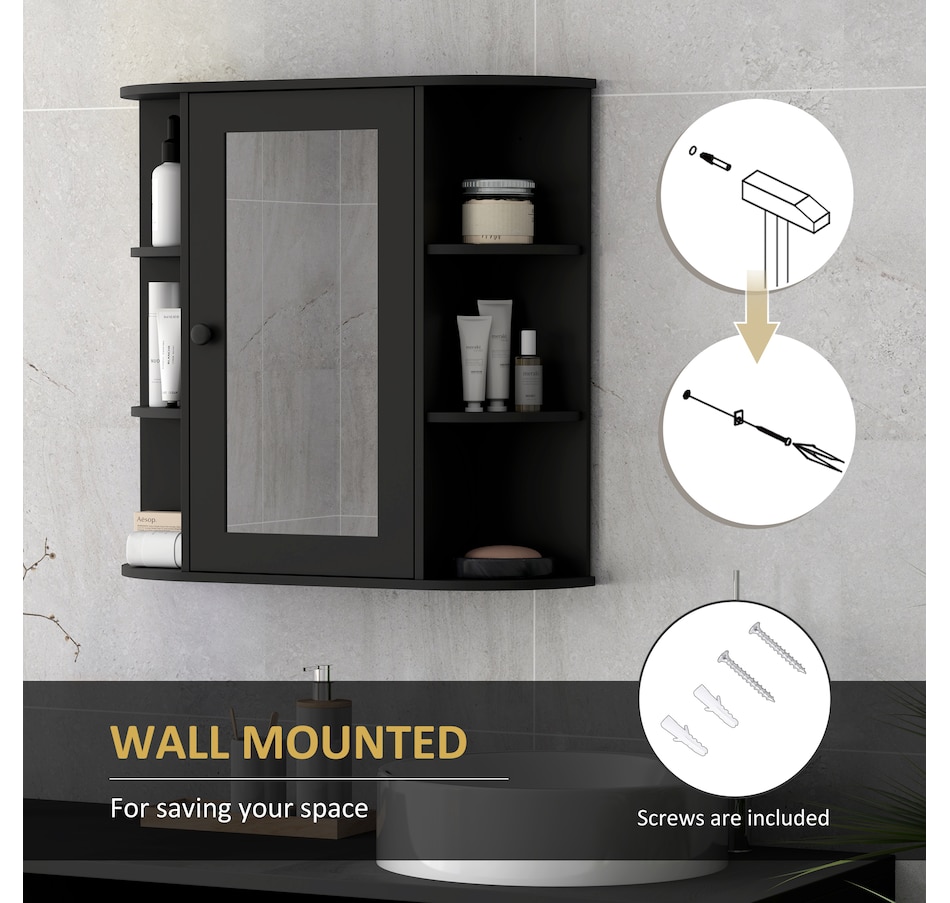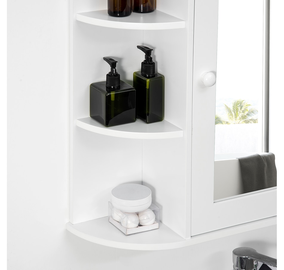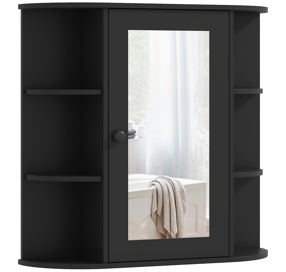 Expand the storage capacity in your bathroom with this bathroom cabinet by HOMCOM. It features multiple shelves to store all your bathroom essentials: soaps, towels, tissues, etc. and equipped with a central mirror, you can make up in front of the cabinet or check your outfit before you going out for work every morning. The bathroom mirror with storage won't take much room and can keep your bathroom clean and organized.