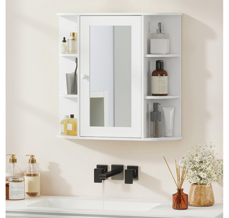 Wall Mounted Mirror Cabinet with Door Shelves Bathroom Powder Room