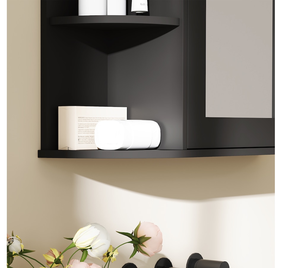 ● It features several internal shelves and open shelves to place your toiletries and beauty products;