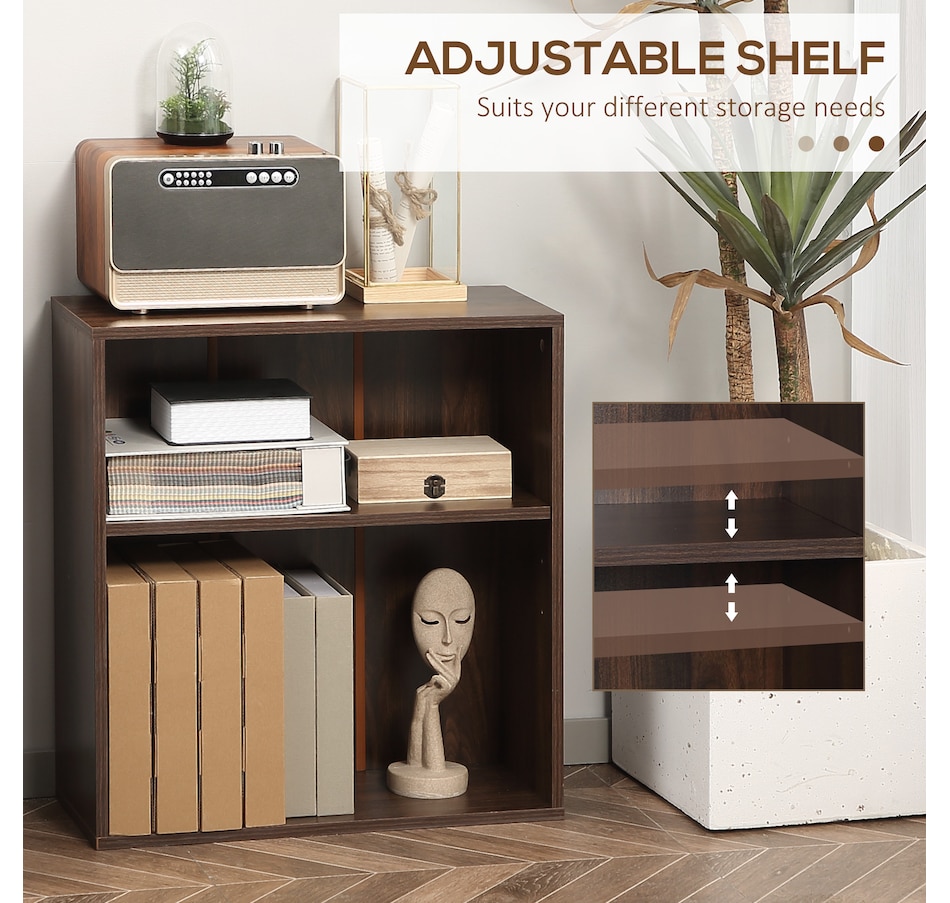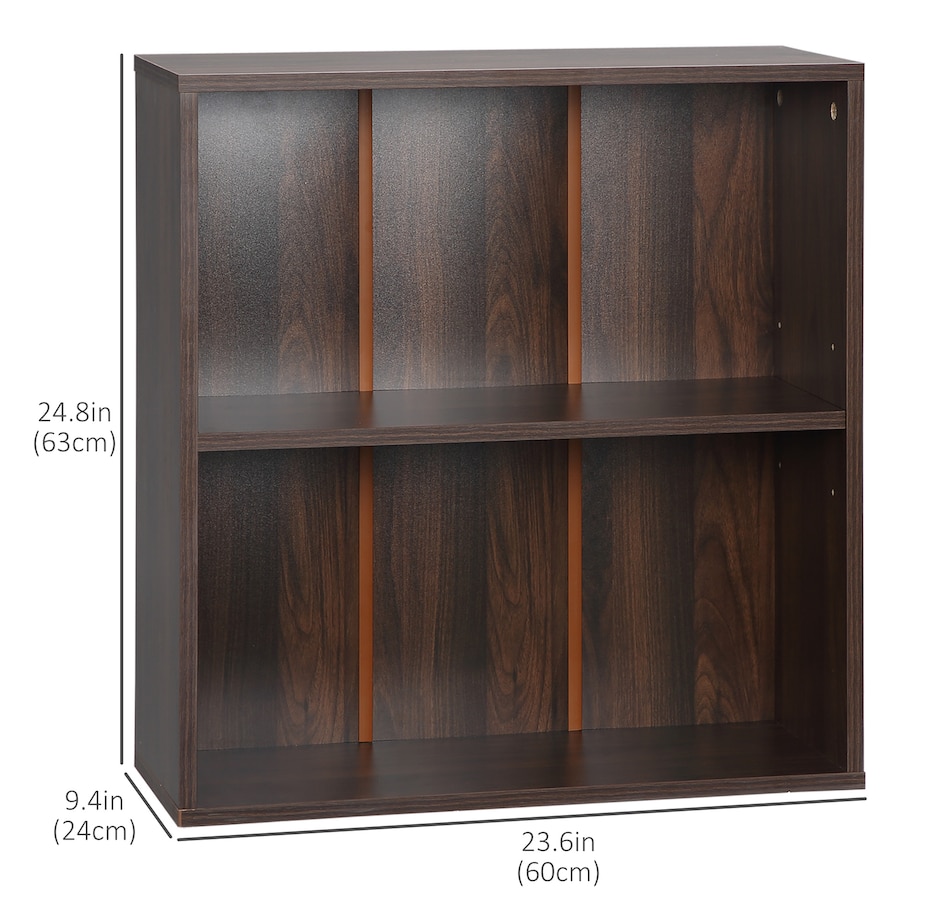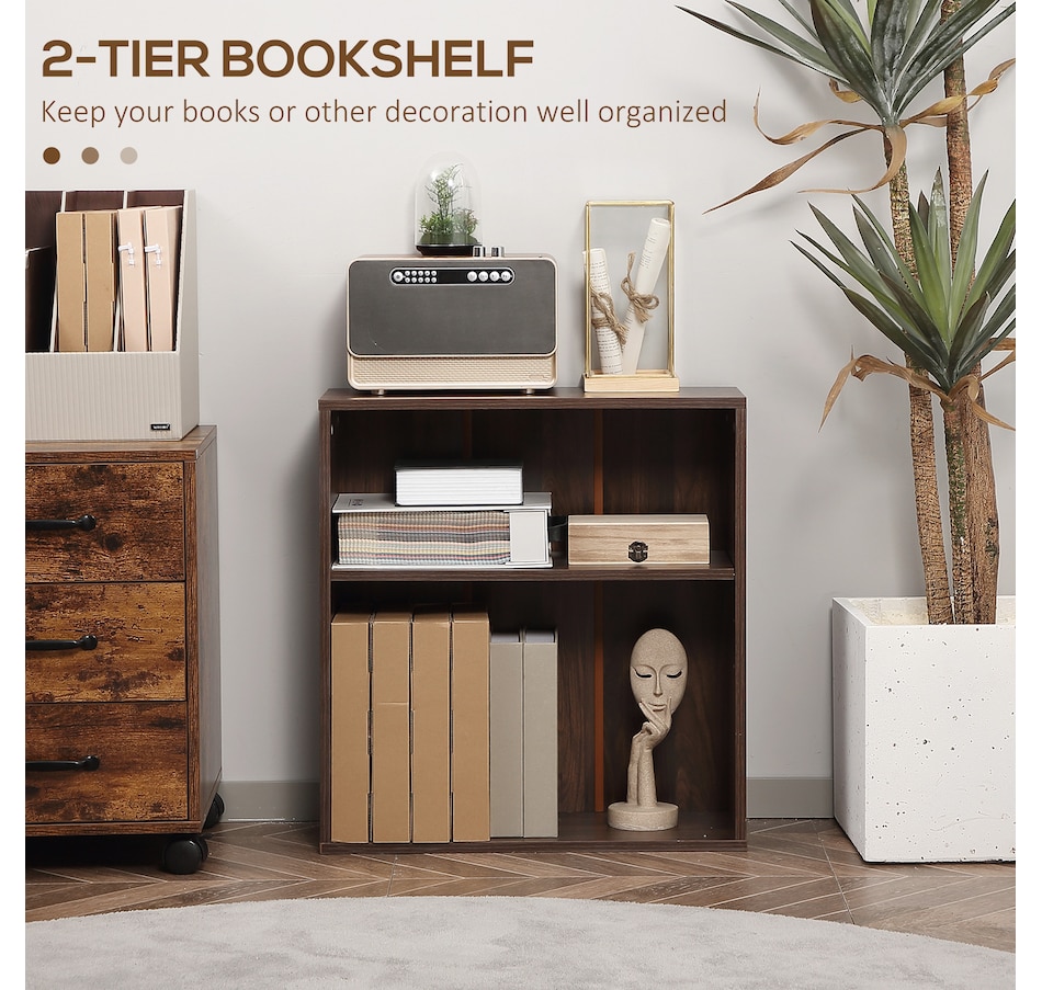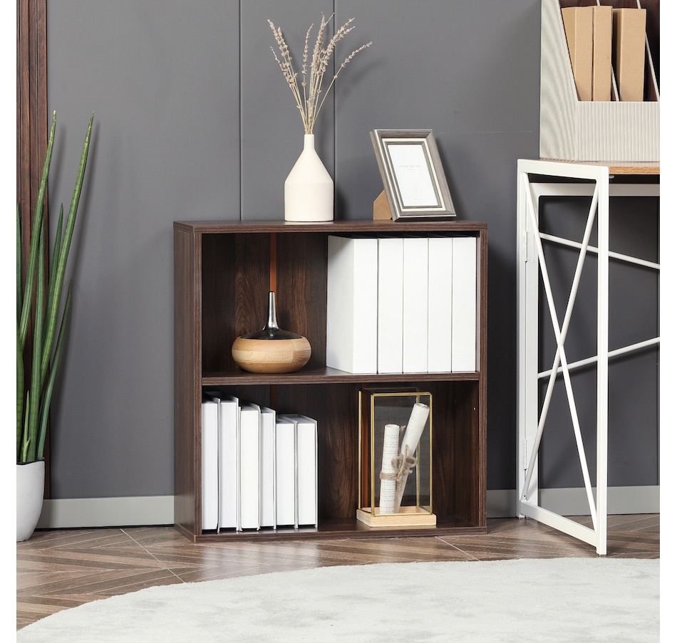 Our HOMCOM 2-tier book shelf unit can be used as a bookshelf or cupboard cabinet in your home, office and study. Made of high quality particle board, surface is matt walnut wood finish, made from melamine; water and scratch resistant. You can take off the middle board and set the suitable height by yourself with the three choices of shelf placements. A wonderful two shelf bookcase with endless customizable possibilities with baskets and stickers. An easy addition to any room.