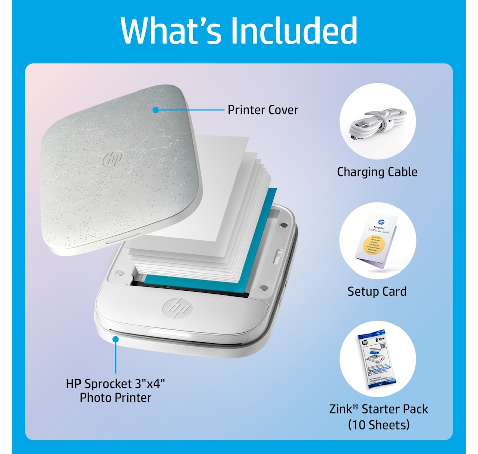 HP Sprocket 3x4 Instant Photo Printer – Prints 3.5x4.25” Photos from iOS & Android - White