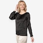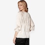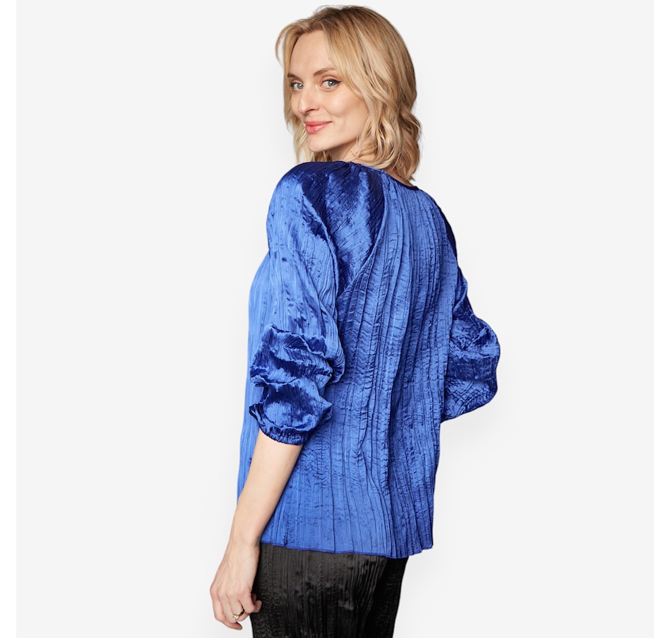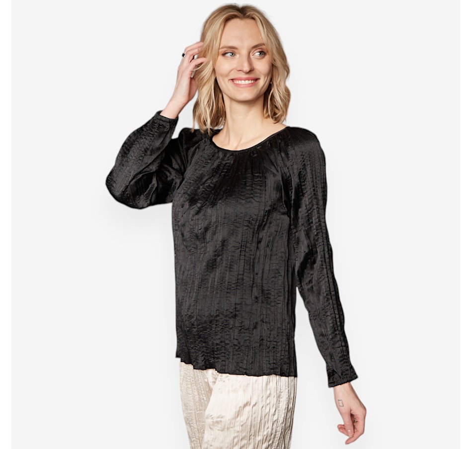 • Fitted, long balloon sleeves, pull-on, rounded neckline, frilled hemline