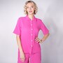 • Semi-fitted, short sleeve, button closure