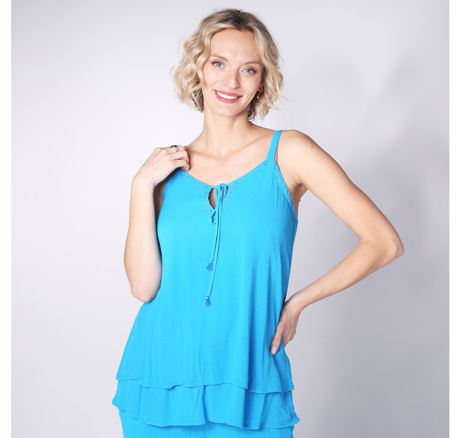 Add something beautiful and feminine to centre your look wearing this gauze top with eyelet trimming from Hailey Lyn.