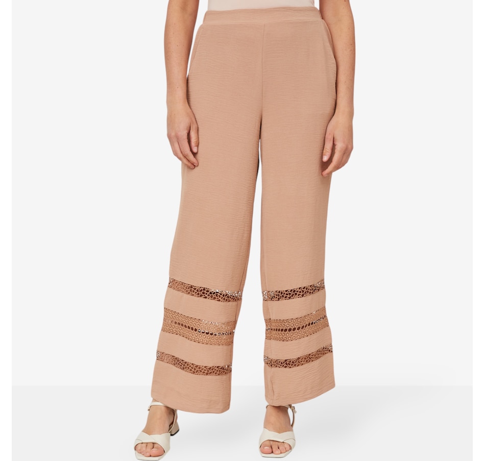 Elevate every ensemble in defined style with this textured wave wide leg palazzo pant from Hailey Lyn.