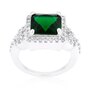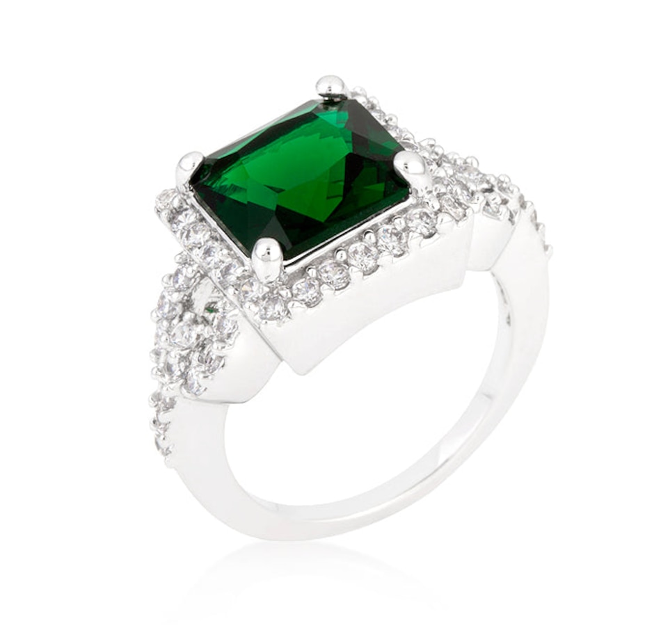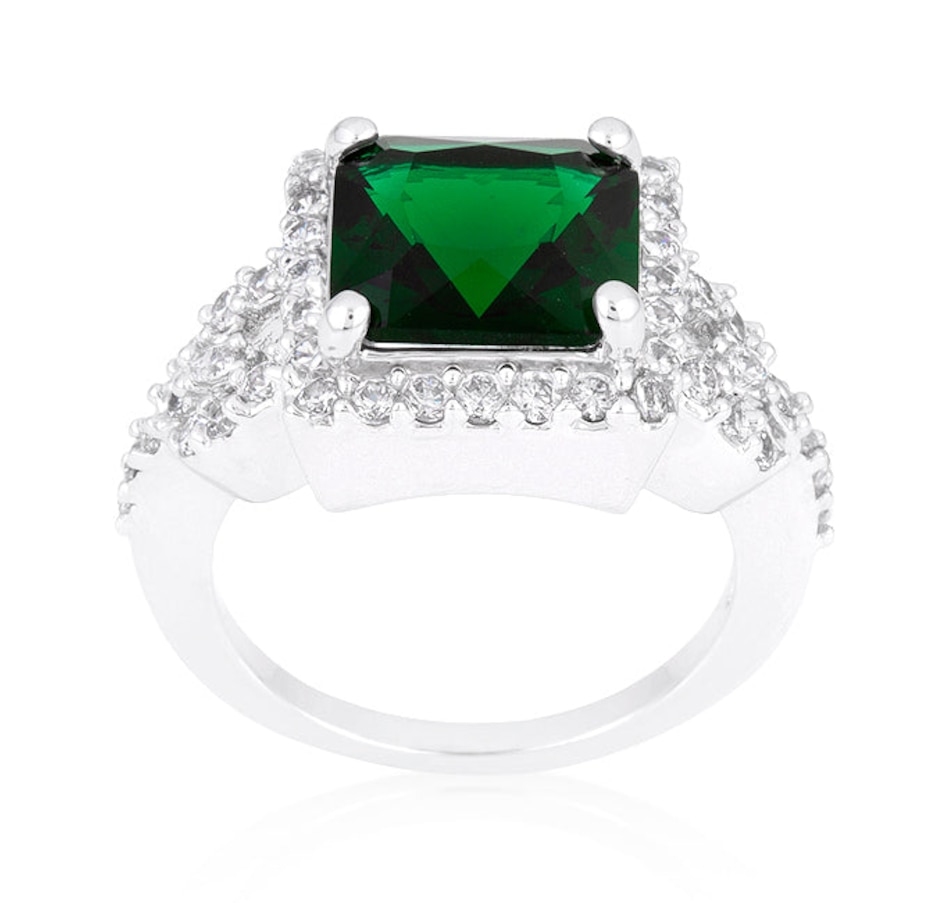 Crafted from and embellished with fine cut cubic zirconia this halo style ring features and cubic zirconia that will sparkle on your finger anywhere. Our genuine finish is achieved using an electroplating process that coats the item with heavy layers of a close cousin to platinum which gives our jewelry a platinum luster.