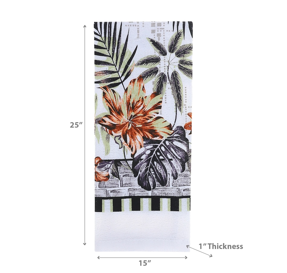 Keep your hands clean and simply hygienic with the soft plush Hand Towel. It features a printed pattern with leaves and muted tones. This multicolored hand towel has a smooth texture and quickly wicks away moisture. Made from cotton material, the towel is highly lightweight and handy. It is ideal to be used in the kitchen where you frequently need to dry your hands. This item is sold on a per piece basis.