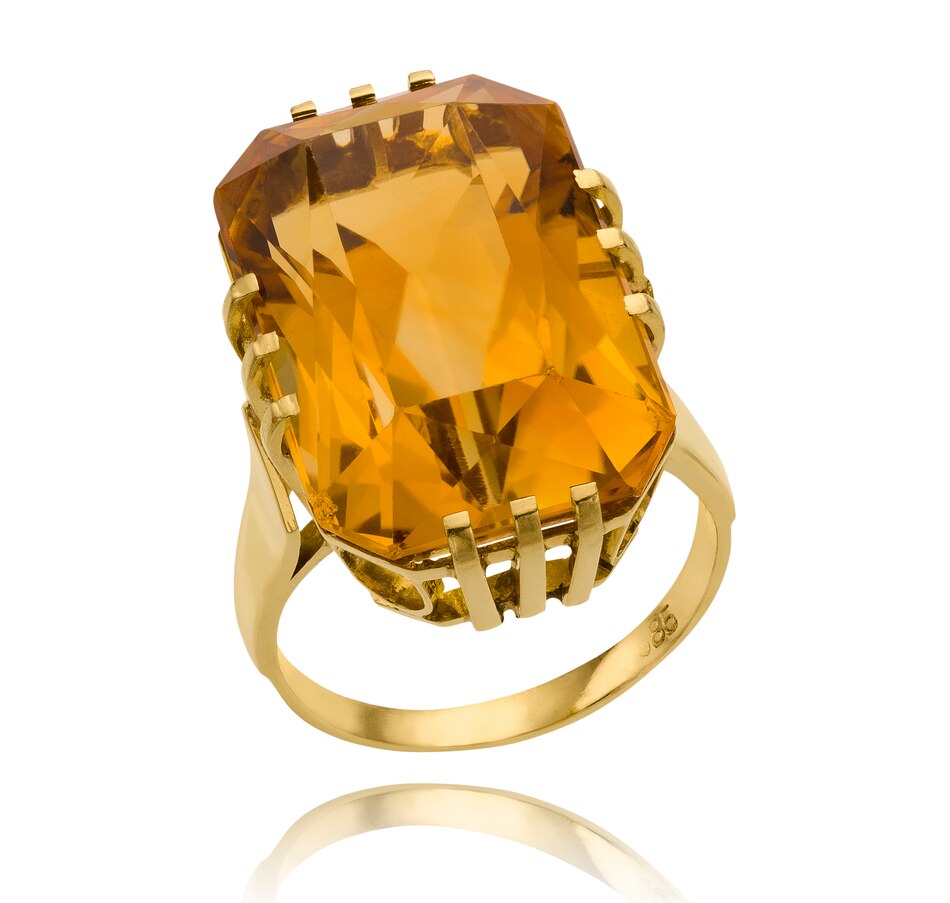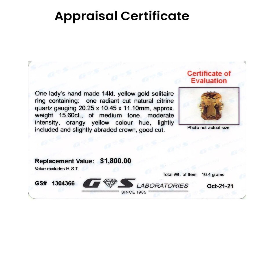 Handmade 14KT Yellow Gold 15.60 Carat Solitaire Citrine Ring