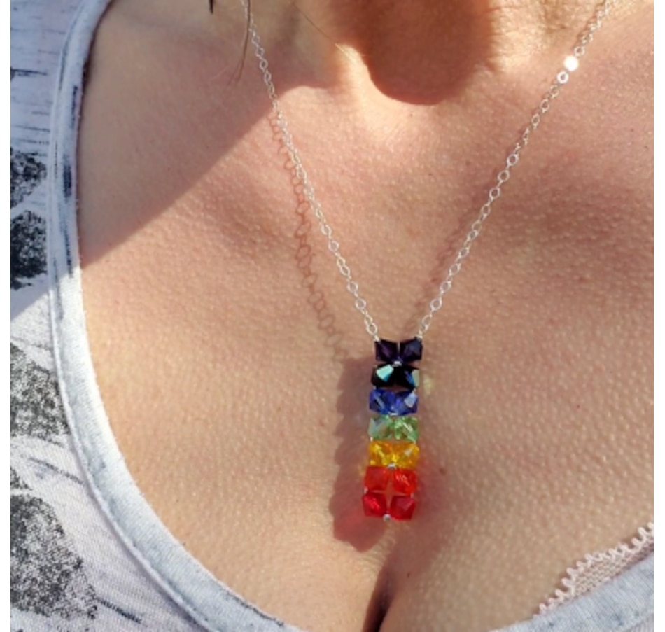 Indulge in the mesmerizing and one-of-a-kind Handmade True Rainbow Crystal Rock Candy Necklace. Each handmade piece is expertly crafted with colors of the rainbow. A Wire woven Crystal necklace that look like delicious rock candy we know from way back when. It's making a unique and eye-catching addition to any outfit. Bring joy and sparkle to your day with this handmade necklace which is conveniently offered in 4 lengths.Original Design 14 Swarovski Crystals in Rainbow Colors14 crystals 6mm BiconesSterling silver weave wire Sterling Silver Flat Cable ChainChoose your necklaces length from 14, 16,18 or 20 inchesHandmade in Montana Got time? Read 2min my Blog Post atThe Fascinating Meaning Behind Each Color of the True Rainbow¯Â»Â¿