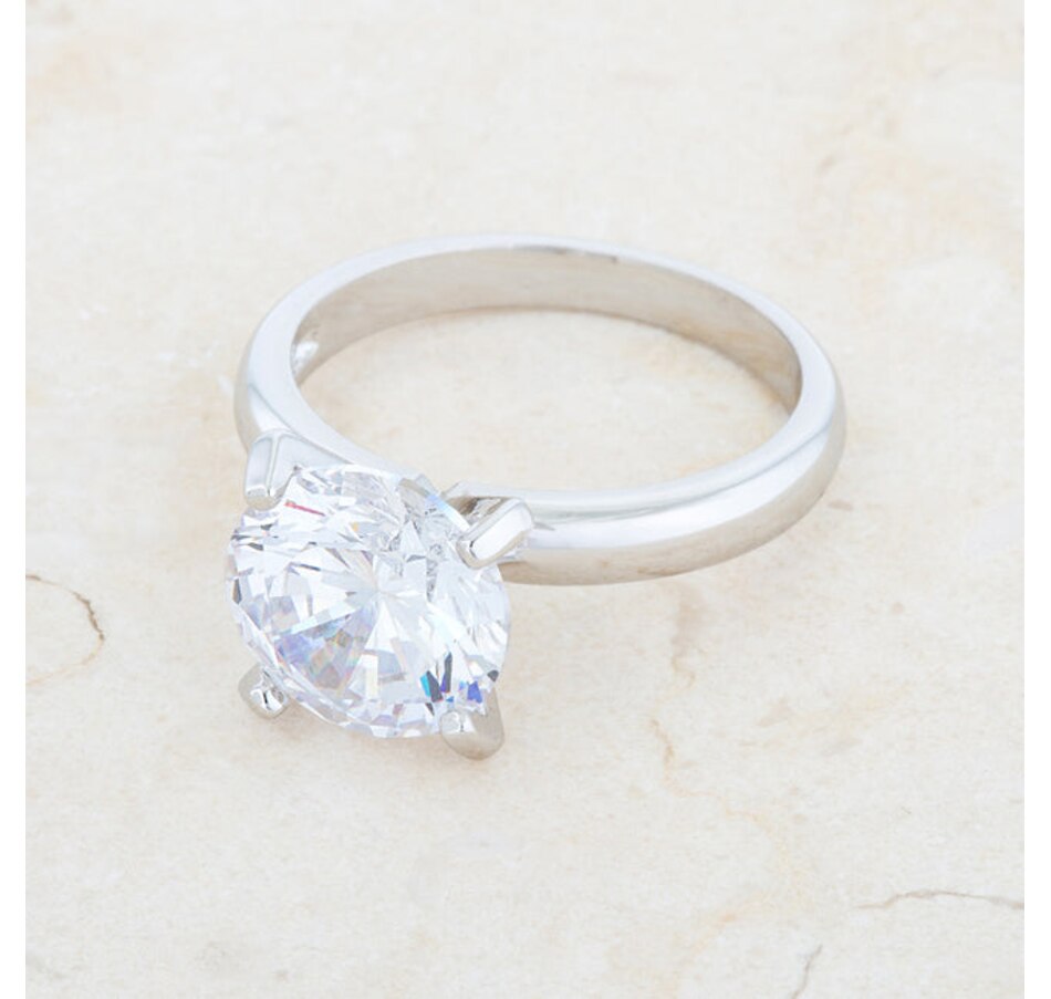 A gorgeous solitaire stone accents a simple setting in this classic ring. The perfect piece for any special occasion.