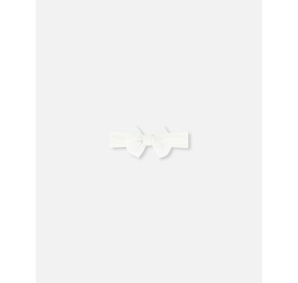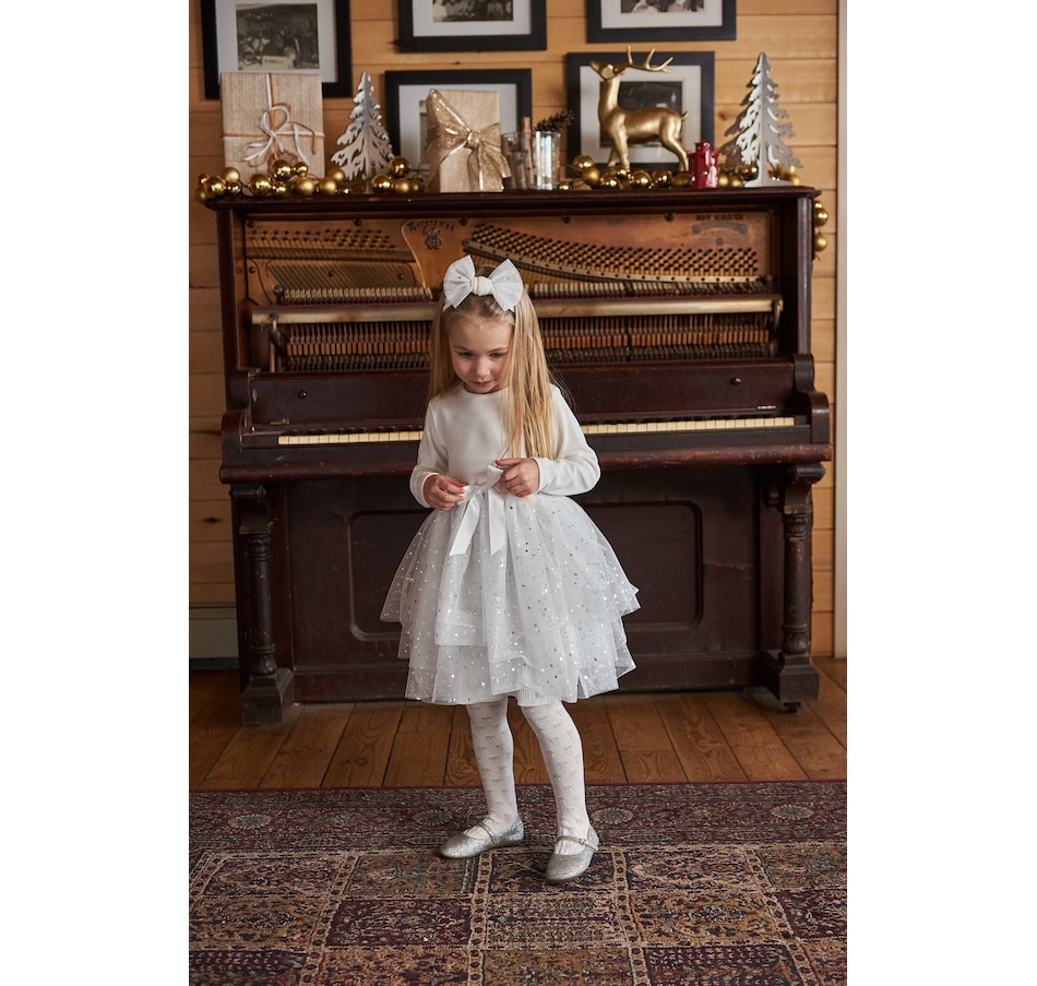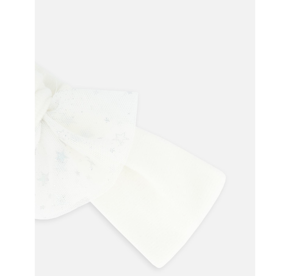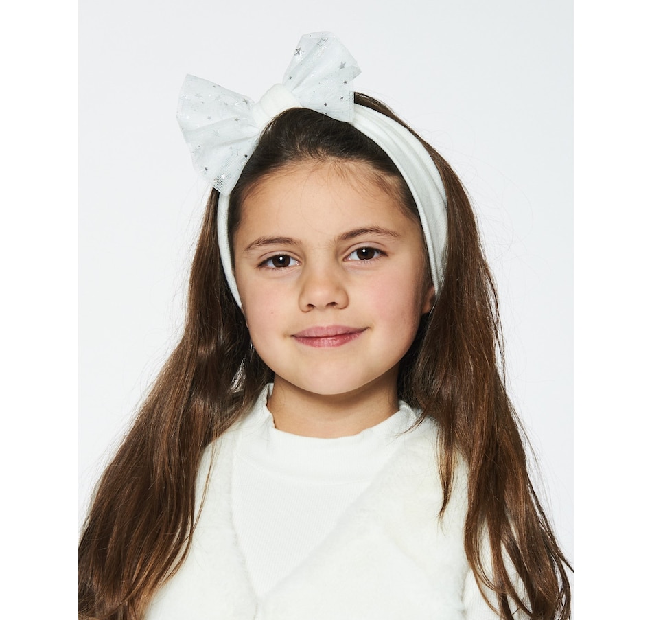 Accessorize any look in our Party! Party! collection with our Headband with Glittering Tulle Bow Off White. Soft and stretchy, this headband features a gathered elastic panel in back and a darling bow in sheer tulle with a shimmering print.