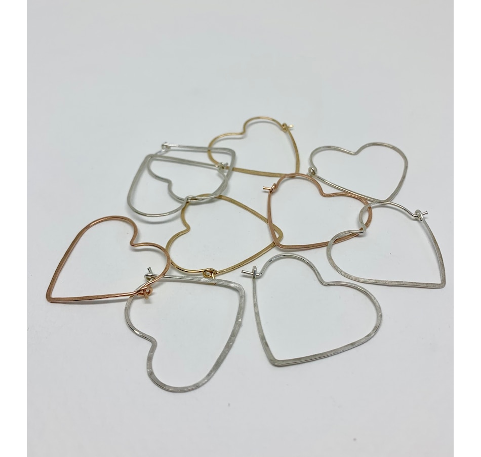 20 gauge wire is hand formed and forged into classic everyday heart shaped hoops. Lightweight and elegant, the hammered texture adds shine and aesthetic. These hoops are 1" across. These gorgeous, textured hoops are a part of The Spirit Collection: Adornment for those extra special moments in life, designed to celebrate life, love, and joy. These lovely hoops are completely hand formed. These are available in silver, yellow gold fill, or rose gold fill.100% handmade in Hermosa Beach, California USA using recycled metals and sustainable materials. These are made to order, so please allow up to 1 week production before shipping. Thank you!