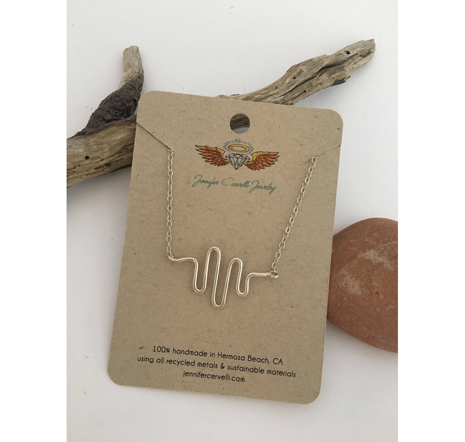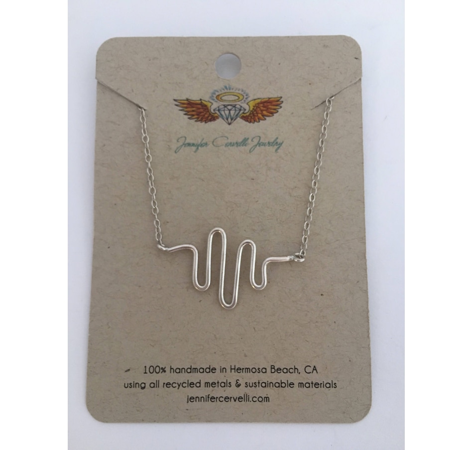 The "Heartbeat Necklace" Is hand formed using 16 gauge round wire that is slightly hammered, and each pendant will vary slightly as they are all handcrafted. The pendant is attached to chain with an easy to use lobster clasp. Chain length is an adjustable 16-18 inches.This is a perfect gift for the nurse in your life, or for a loved one, the heart beat has so many personal, special meanings.This necklace is part of "The Emergi Collection": Emergi - to rise up, emerge, free ones self. Adornment for those extra special moments in life, designed to celebrate life, love, and joy.100% handmade in Hermosa Beach, California USA using recycled metals and sustainable materials. These are made to order, so please allow up to 1 week production before shipping. Thank you!