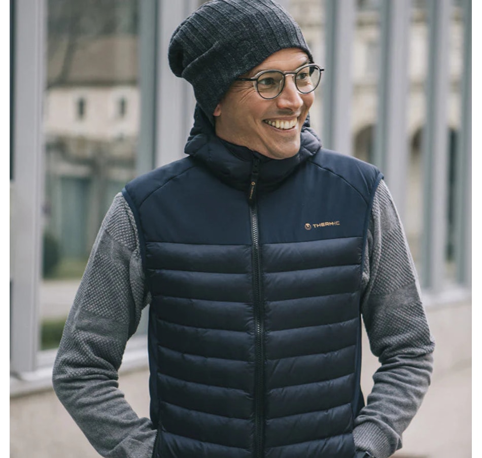 "This sleeveless jacket, with a stylish streetwear look, will keep you warm during everyday outings. The six heated areas distributed throughout the vest provide you with a pleasant, consistent warmth. The Therm-IC heating technology combined with the POWERBANK battery helps you to confidently fight the cold with peace of mind. Both comfortable and light, it can be worn by itself or under another piece of clothing to meet all your needs.