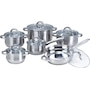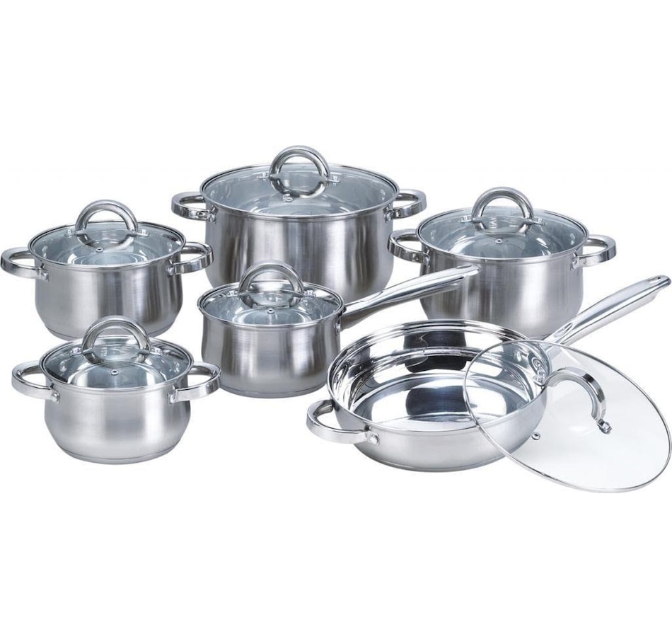 This 12 piece cookware set is made from high quality stainless steel. Each pan comes with a 3 layered thermal bottom with heat conduction. This heat technology helps food heat quickly and retains heat well. This set is suitable for all cooking sources: electric and gas stoves, or glass or ceramic burners..Cookware Sets include 10.5-inch Fry pan with lid, 1.75-quart Sauce pan with lid and 1.75-quart, 2.25-quart, 3.25-quart, 5.75-quart Casserole with lids.Mirror polished stainless steel cookware, inside and outside, capsulated bottom for even heat distribution.Suitable for all cooking source electric and gas stove or glass and ceramic.