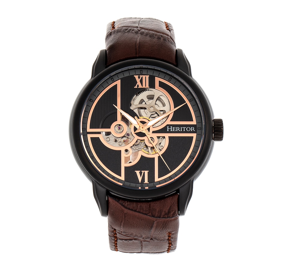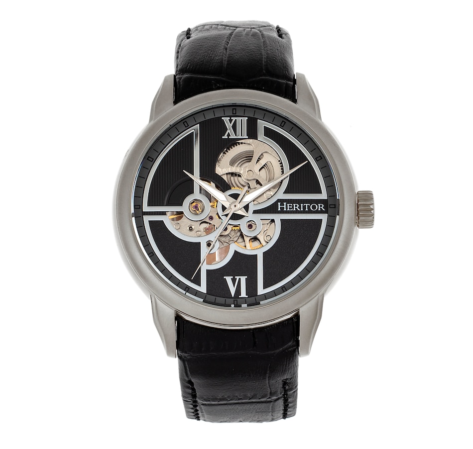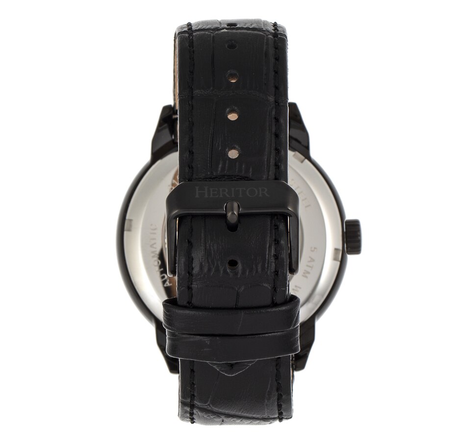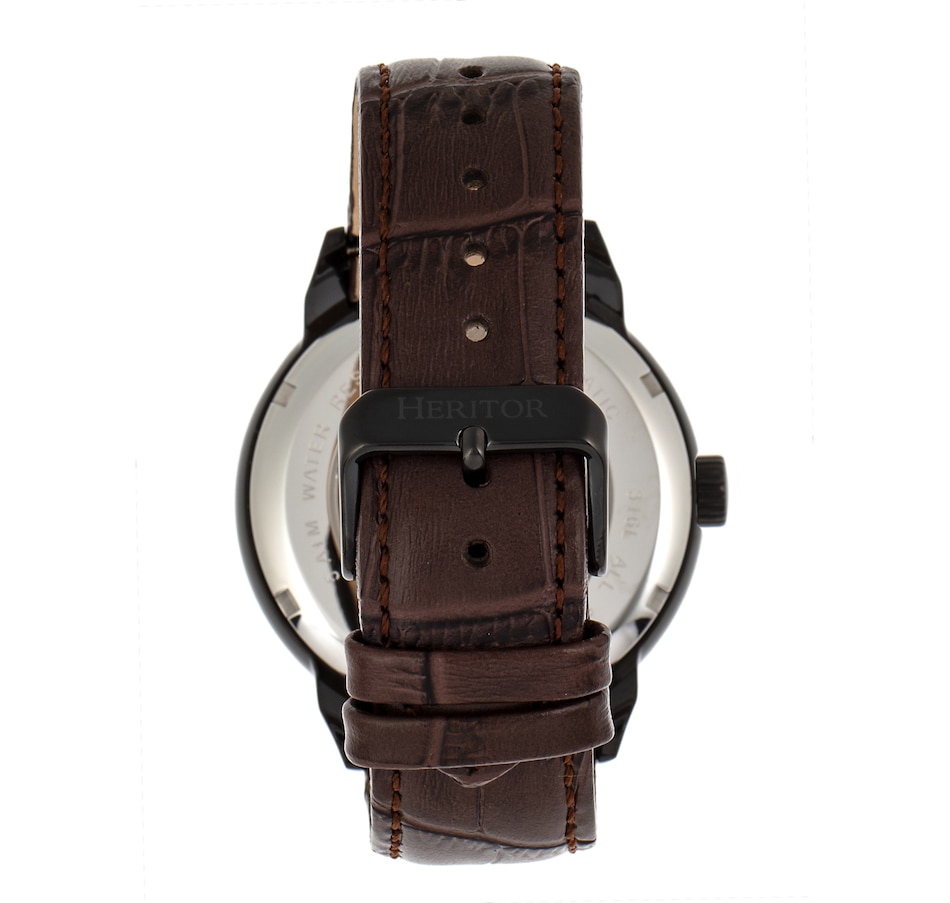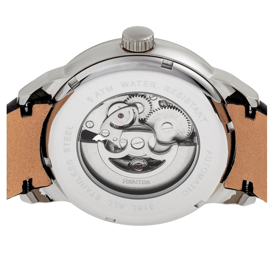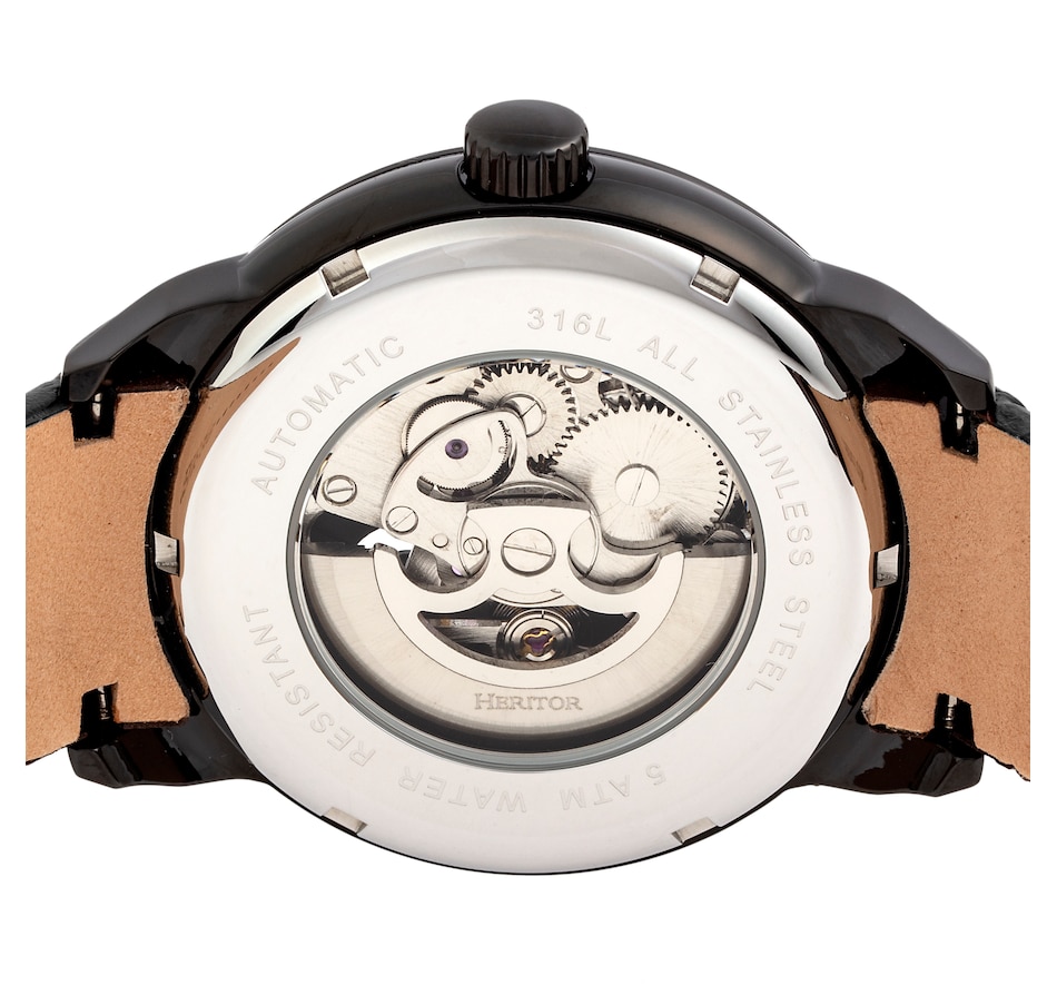 Automatic Sanford Semi-Skeleton Leather-Band Watch