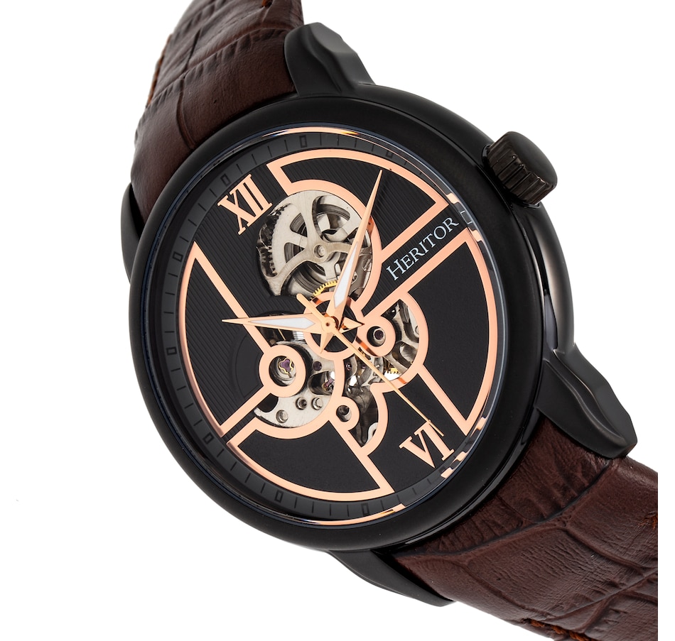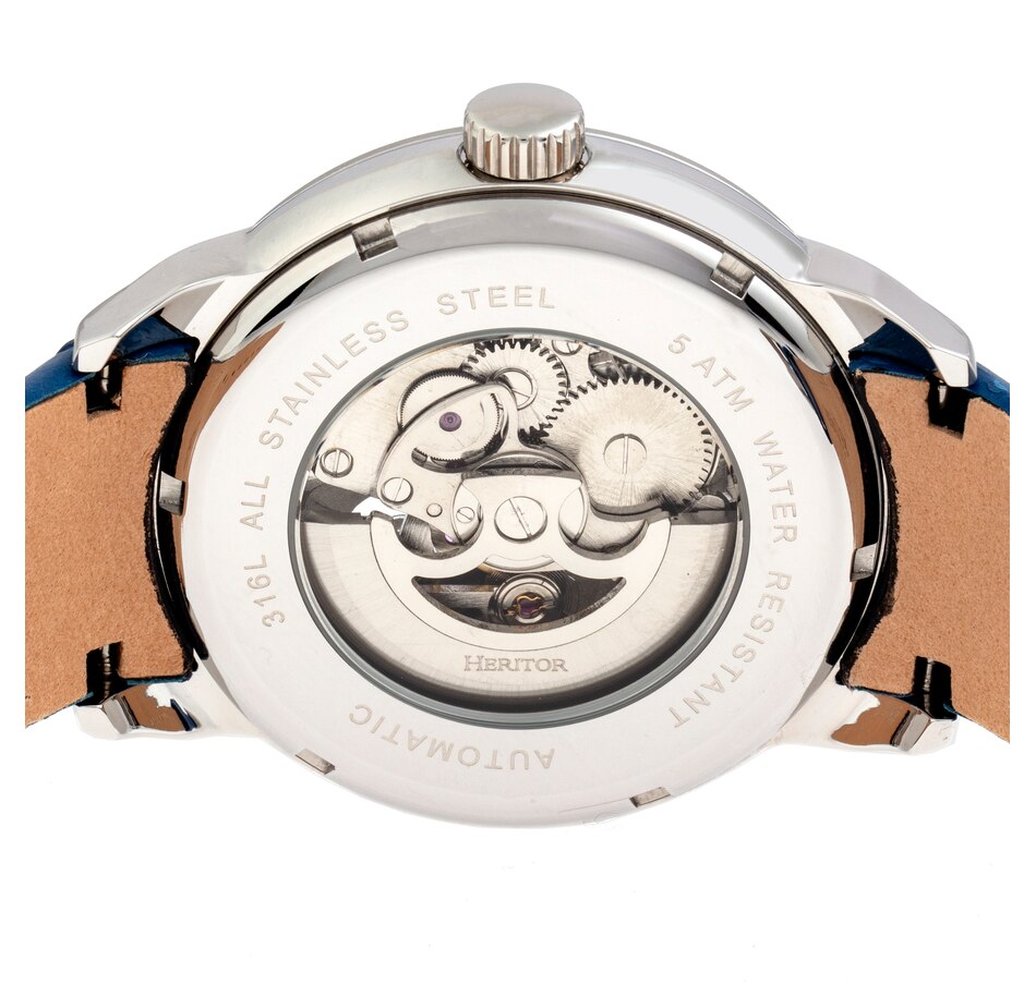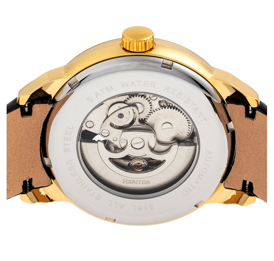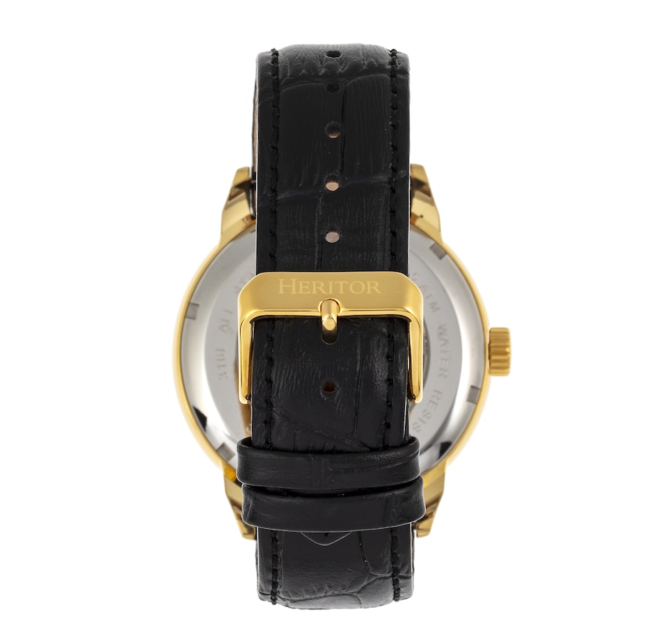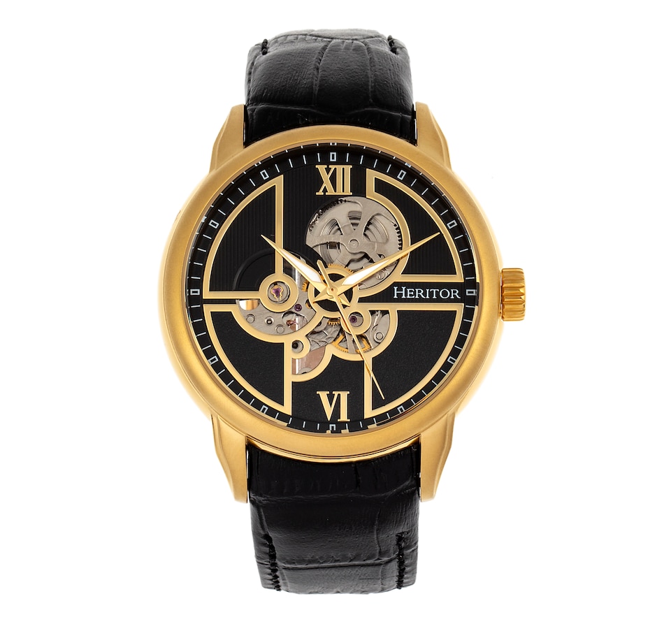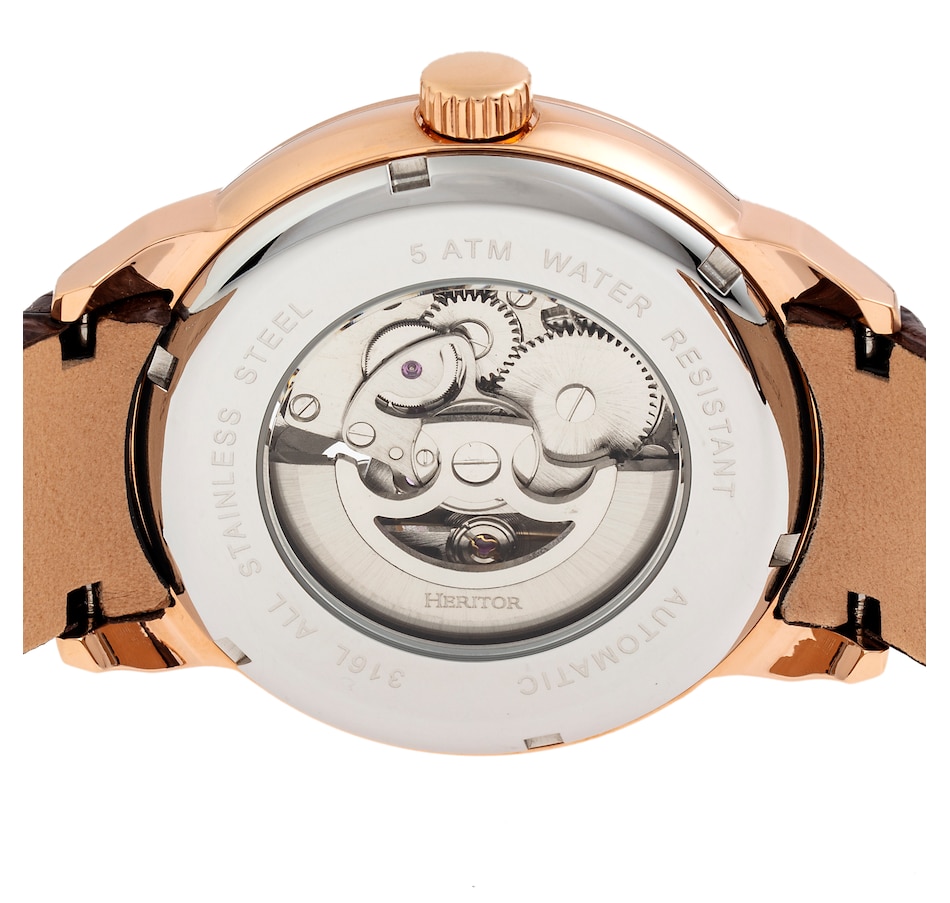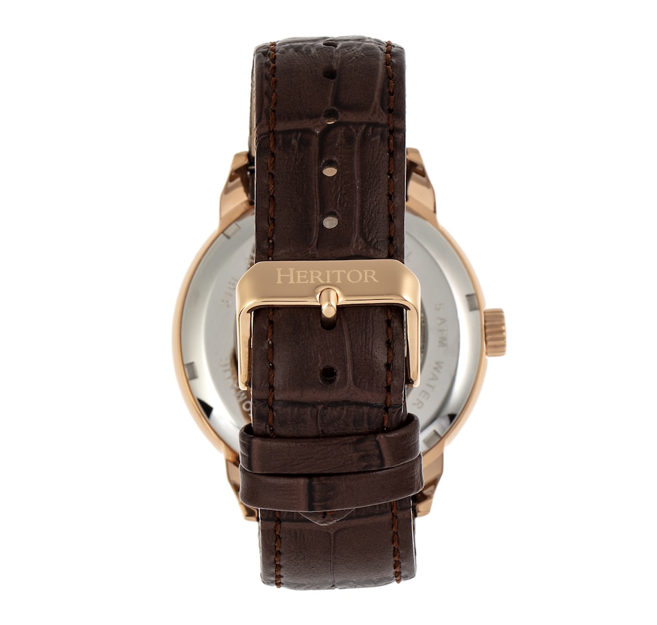 Automatic Sanford Semi-Skeleton Leather-Band Watch