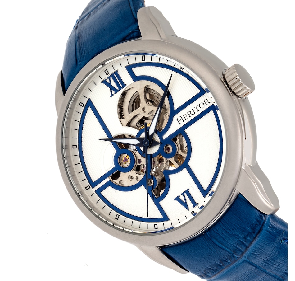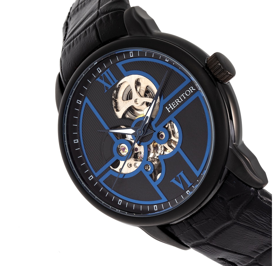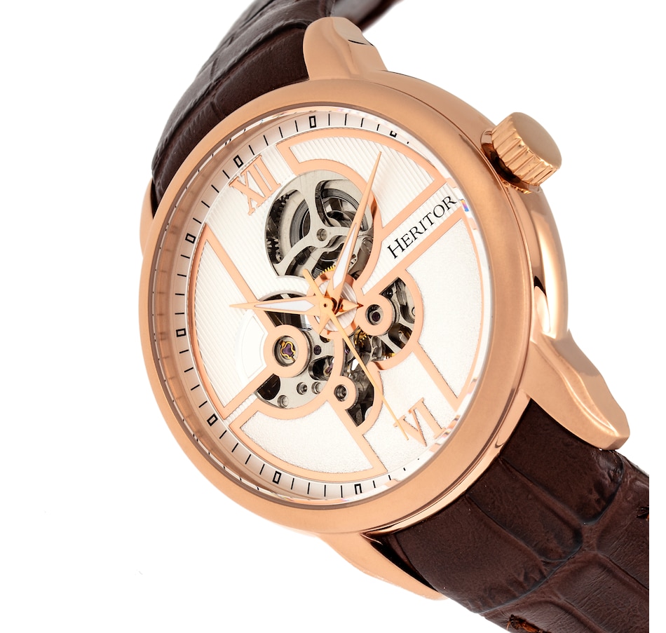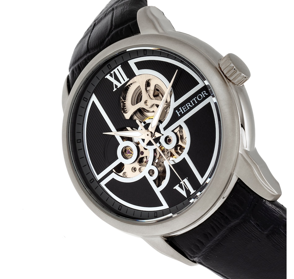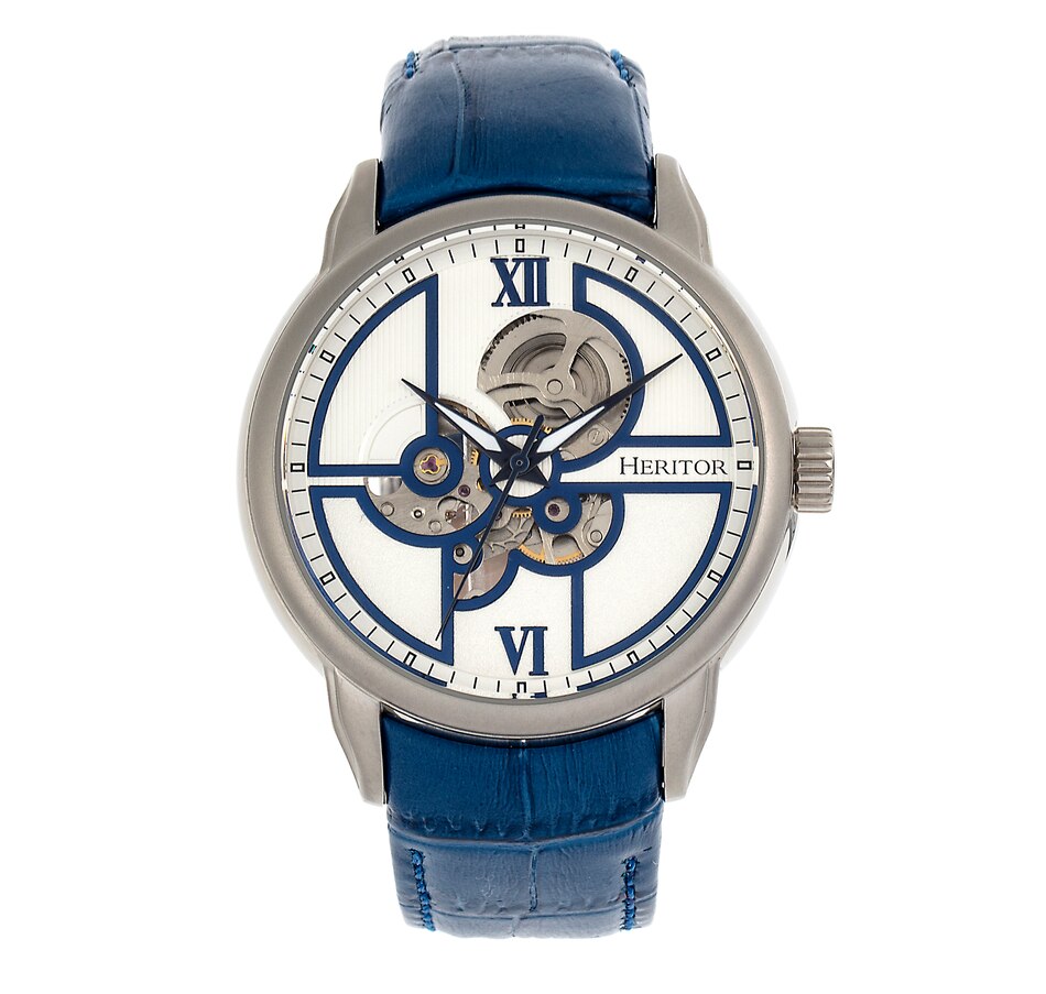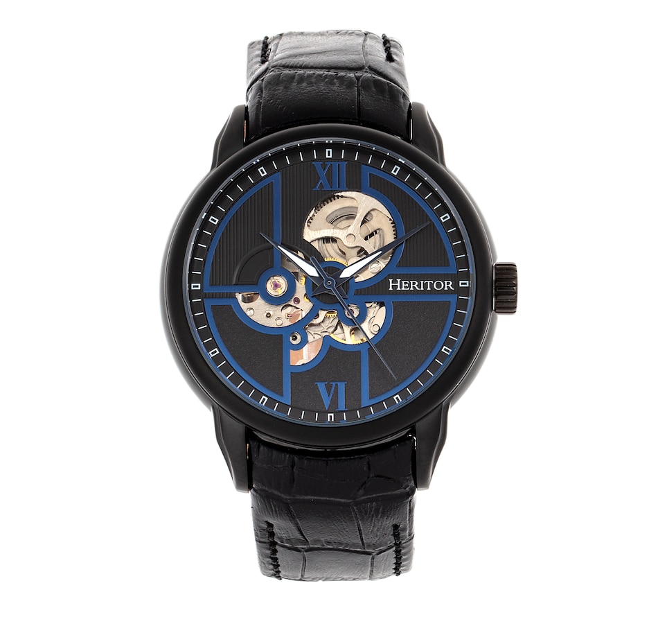 Automatic Sanford Semi-Skeleton Leather-Band Watch