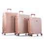 Edge is a fashionable, modern luggage made from polycarbonate composite, a lightweight yet durable and impact-resistant material that's also used in the making of bulletproof glass! All sizes nest together into the 30-inch piece, making the luggage space-saving for convenient storage when not travelling. The elegant exterior features colour-matching trim on the handles, corners, wheels, zippers and lock, and protective metal corner guards to help deflect impacts. Its lightweight, telescopic trolley handle system is made from aircraft-grade aluminum and can be locked in at varying heights at the push of a button for just the right comfort, and its eight smooth and durable 360-degree spinner wheels carry the weight safely while allowing for effortless motion on any terrain. A zipper-released expansion system allows for an extra 20 percent in packing capacity, and a built-in, flush-mounted TSA combination lock helps with safe and secure travel. The stylish, fully-lined interior is laid out in a convenient 50/50 split, with buckled compression straps, multiple zippered pockets, and a built-in zippered divider for compact and organized packing.