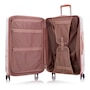 • Each luggage features (4) dual 360-degree spinner wheels, for effortless motion. These wheels feature eight points of contact (versus the usual four on regular luggage) for increased stability, durability, and smooth rolling on any surface terrain