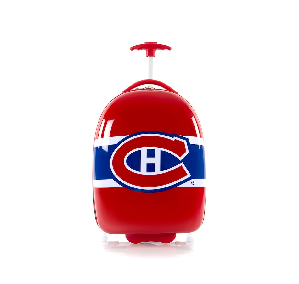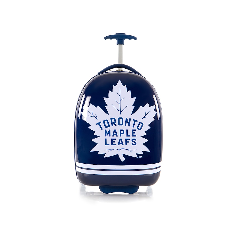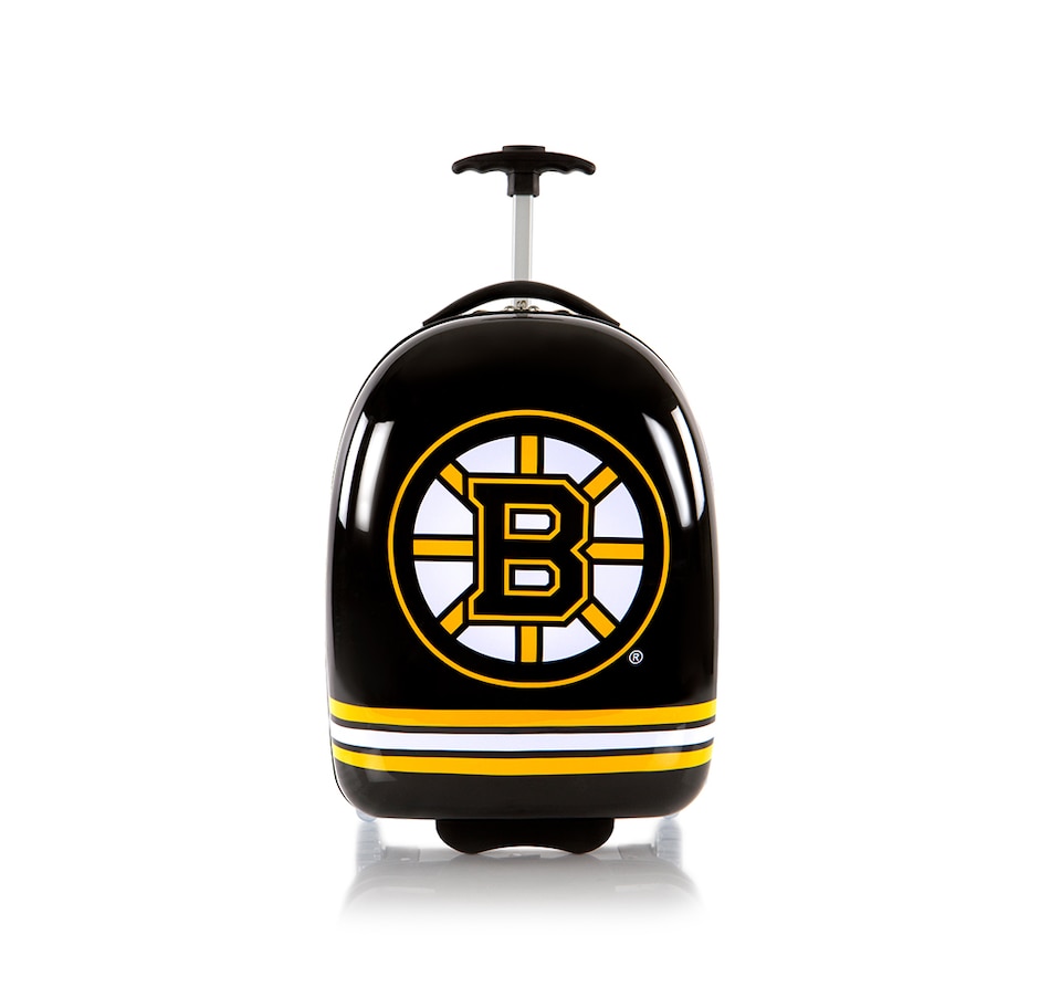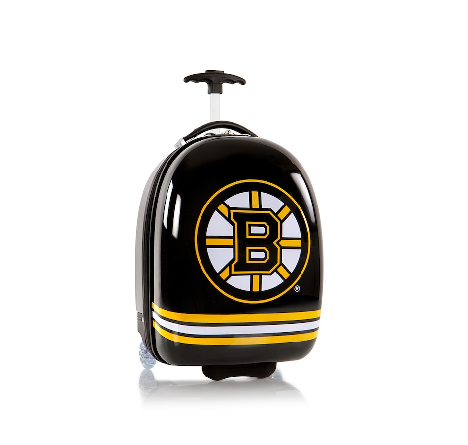 The puck stops here! The Heys Major League Sports Luggage Collection of NHL 18-inch licenced luggage features official major league logos and is a fun way for children to cheer on their favourite hockey teams. With vibrant colours and bold team logos, kids can take this lightweight luggage everywhere, packed with all their special items for school, their next sports practice, play dates and field trips, or as the perfect carry-on for the next family vacation. It's made from lightweight and impact-resistant ABS/polycarbonate with an overall protective clear coat layer, giving each piece a beautiful glossy shine with vibrant colours. The interior is fully lined and features a printed pattern of each team's logo and the Heys logo. It also has double interlocking straps to hold items in place and a zippered divider for internal organization.