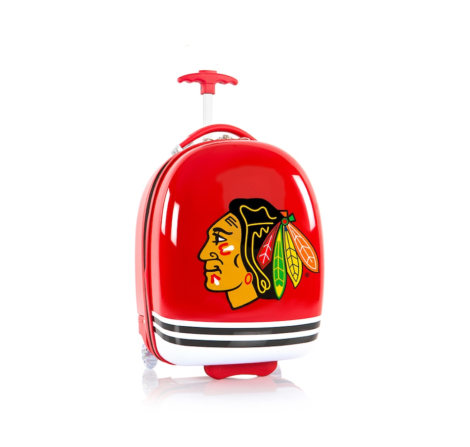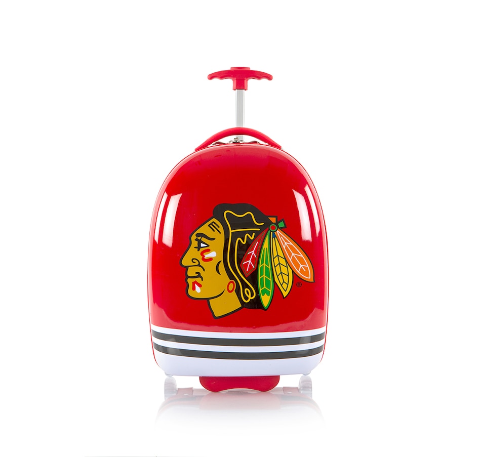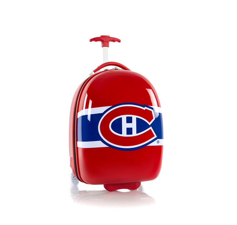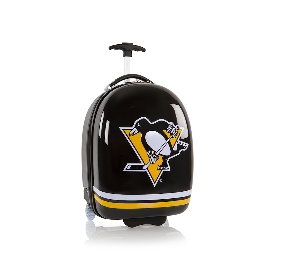 The puck stops here! The Heys Major League Sports Luggage Collection of NHL 18-inch licenced luggage features official major league logos and is a fun way for children to cheer on their favourite hockey teams. With vibrant colours and bold team logos, kids can take this lightweight luggage everywhere, packed with all their special items for school, their next sports practice, play dates and field trips, or as the perfect carry-on for the next family vacation. It's made from lightweight and impact-resistant ABS/polycarbonate with an overall protective clear coat layer, giving each piece a beautiful glossy shine with vibrant colours. The interior is fully lined and features a printed pattern of each team's logo and the Heys logo. It also has double interlocking straps to hold items in place and a zippered divider for internal organization.