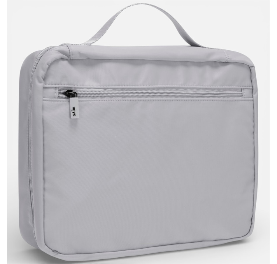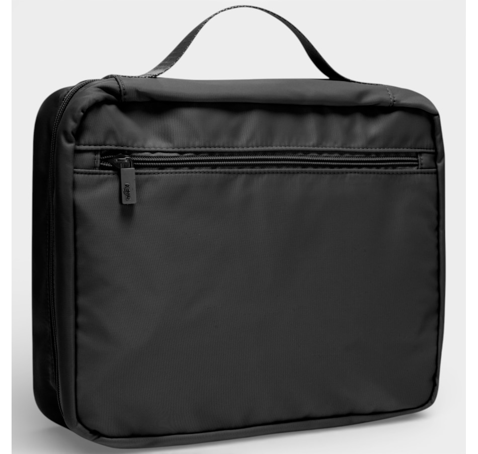 • Includes a built-in hook to hang the bag on a door or mirror, and a top carrying handle for easy mobility