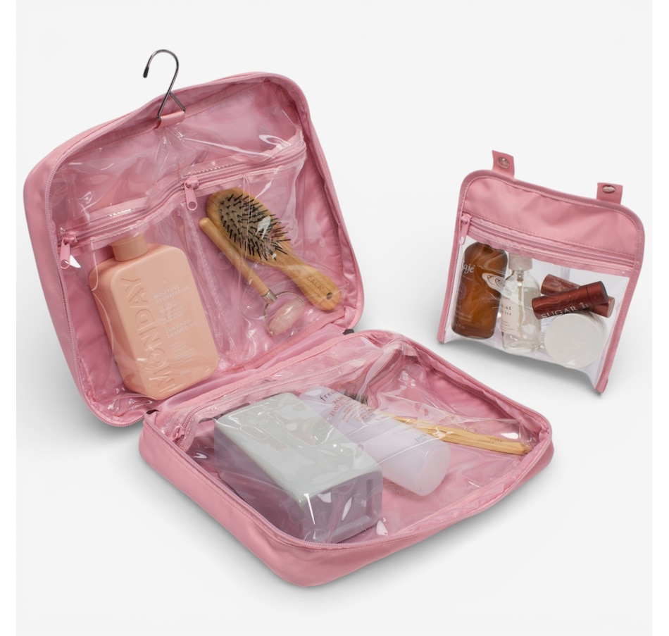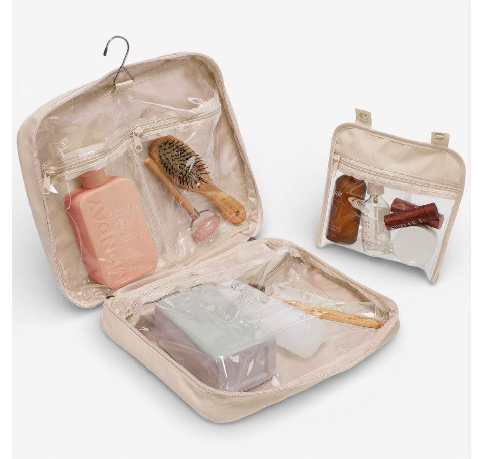 This stylish and lightweight bag offers a spacious compartment that's perfect for storing and organizing your toiletry essentials. By using the built-in hook to hang it on, for example, a door or mirror, you'll be able to quickly and easily access and return all your key items in seconds, making it super convenient for use while travelling or at home. When not in use, it compacts easily into a portable size with a convenient carrying handle.