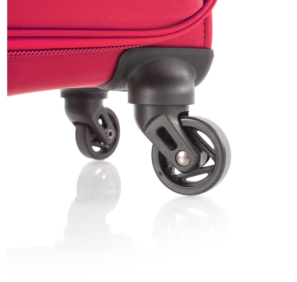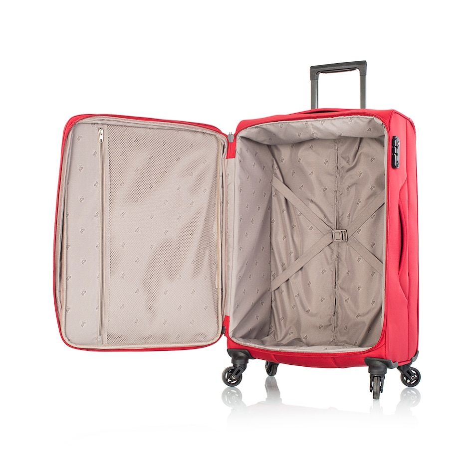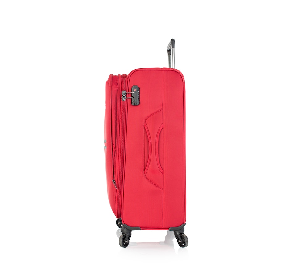 The Heys Xero Pro reinvents softside luggage with an incredibly lightweight design yet without compromising durability and longevity. It's engineered with a super-lightweight exterior nylon fabric with durable corner guards for impact deflection, two easily-accessible zippered pockets on the front panel, and an integrated soft-touch padded top carry-handle, side carry-handle and bottom grab handle. A zipper-released expansion system adds up to 20 percent more packing space, and the fully lined interior features a buckled compression strap and large zippered pocket for compact, organized, stress-free travel. Its four 360-degree spinner wheels spread the weight evenly, allowing for smooth and effortless motion on any terrain, and the lightweight, telescopic trolley handle system is made from aircraft-grade aluminum, with various push-button locking levels for optimal height and comfort.