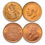 High-Grade King George V Ten Piece Type Set, including a "C" Sovereign $5 Gold Coins