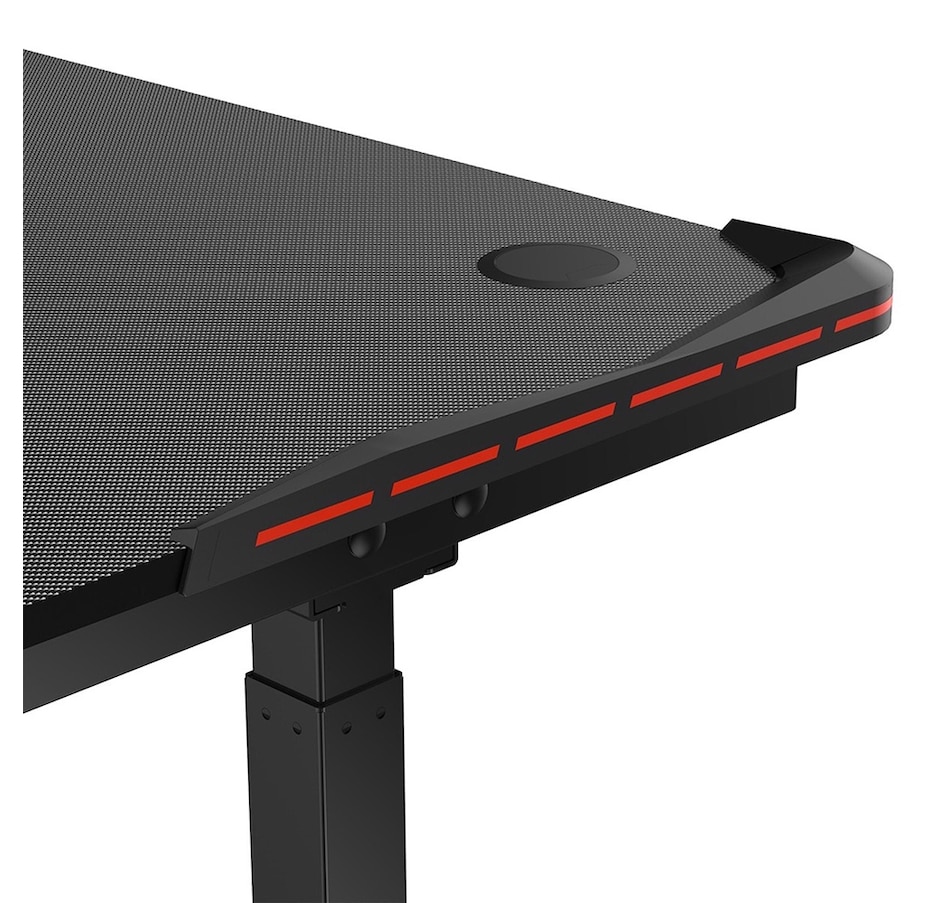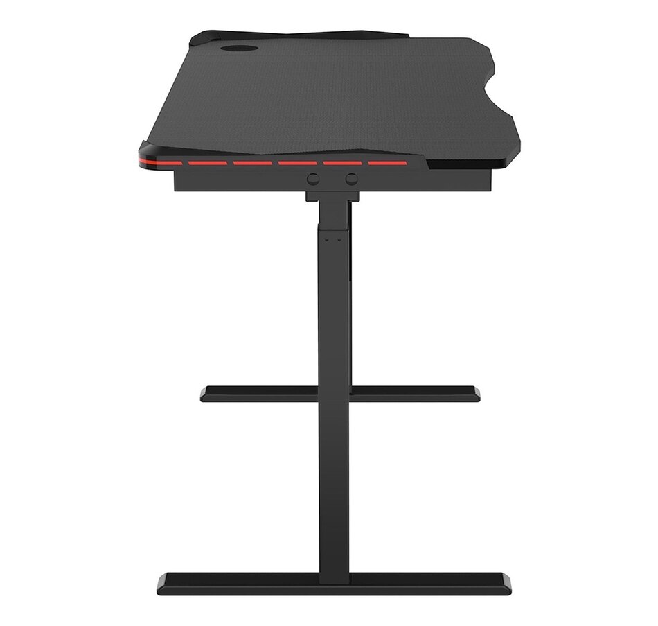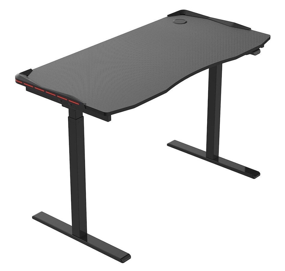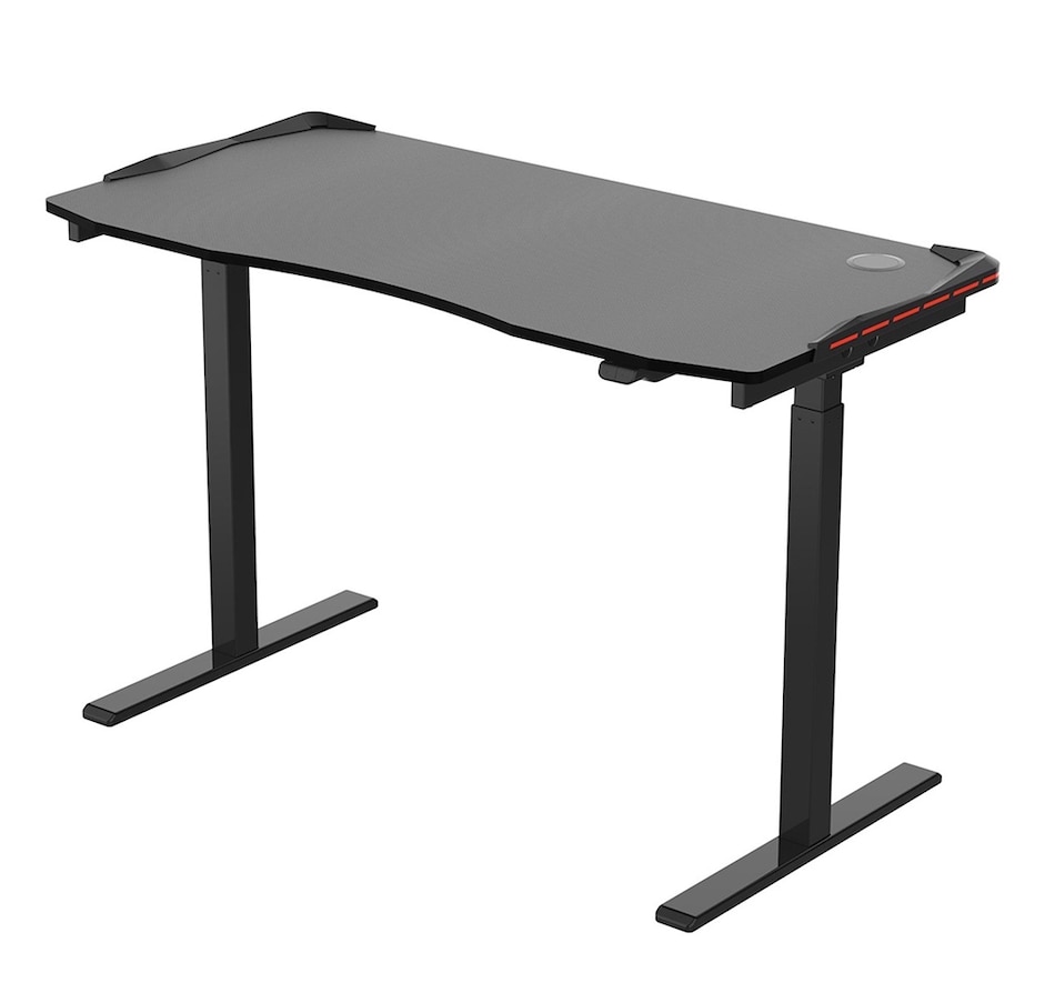 With a large, ergonomic surface, the Tron gaming desk is perfect for gamers who like to spread out in the heat of battle. Its solid build features steel tube framing and a carbon fiber laminated desktop that can support multiple monitor setups, keyboards, mice, and any other accessories needed for epic gaming. The Tron also features a discreet cable management system for hanging cables and comes equipped with a headphone hook and gamepad holder.