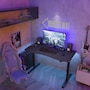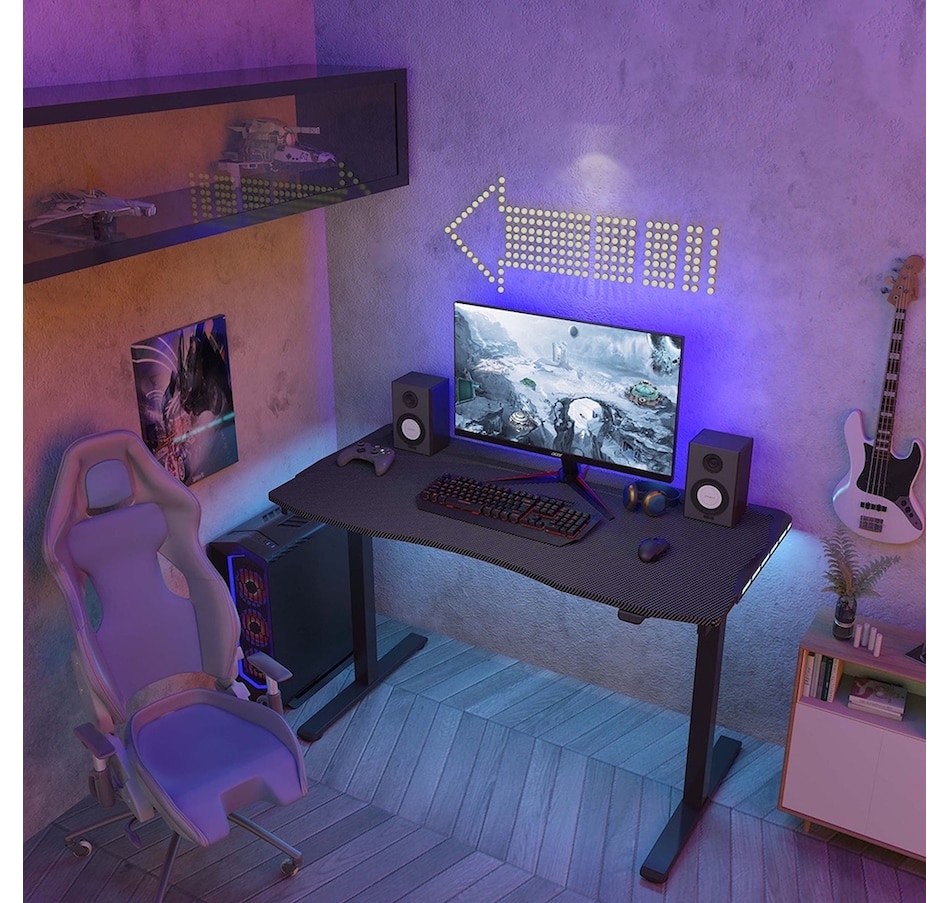 • Connect the two included extension stands on both sides of the desk to create an illluminated gaming ambiance.