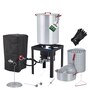 • Includes pots, burner assembly, essential utensils, 5” & 12” thermometers, regulator & gas hose